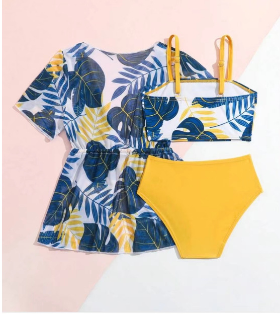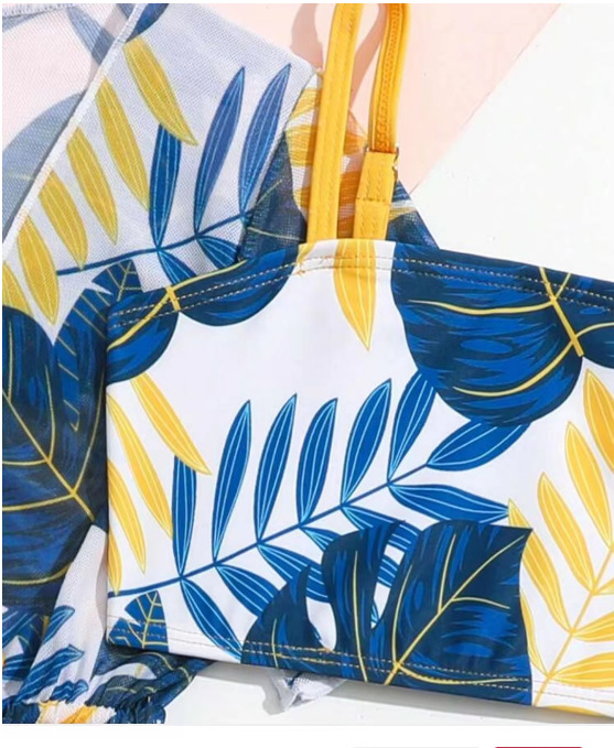 국경을 넘는 유럽과 미국의 새로운 귀여운 암소 프린트 수영복 3 피스 세트 허리 레이스 업 비키니 수영복