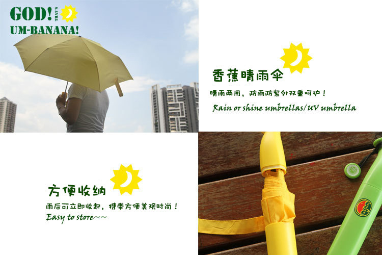 공장 도매 창조적 인 귀여운 어린이 바나나 우산 휴대용 연필 접이식 태양 우산 인쇄 가능한 로고스토어 가기