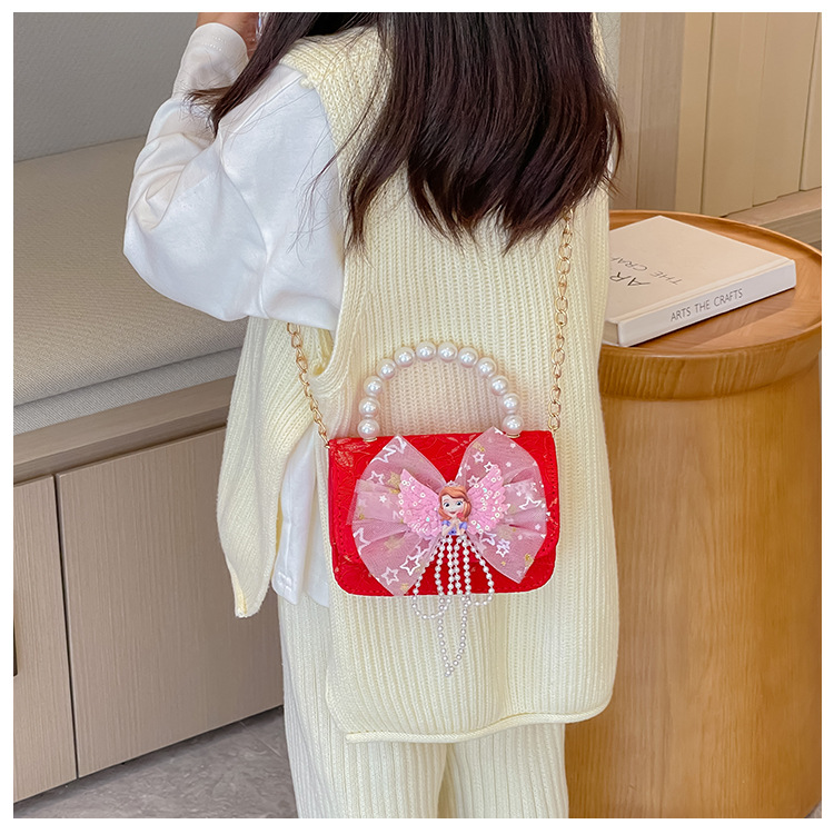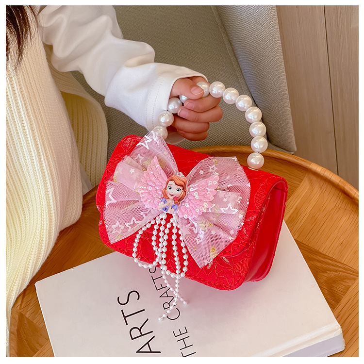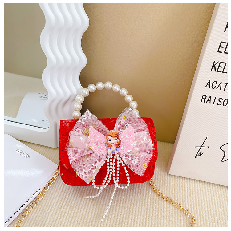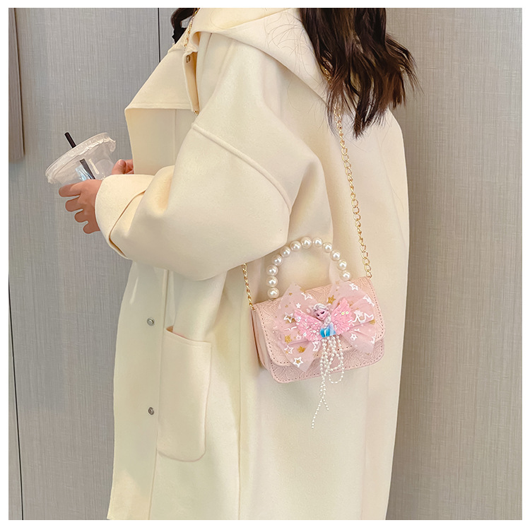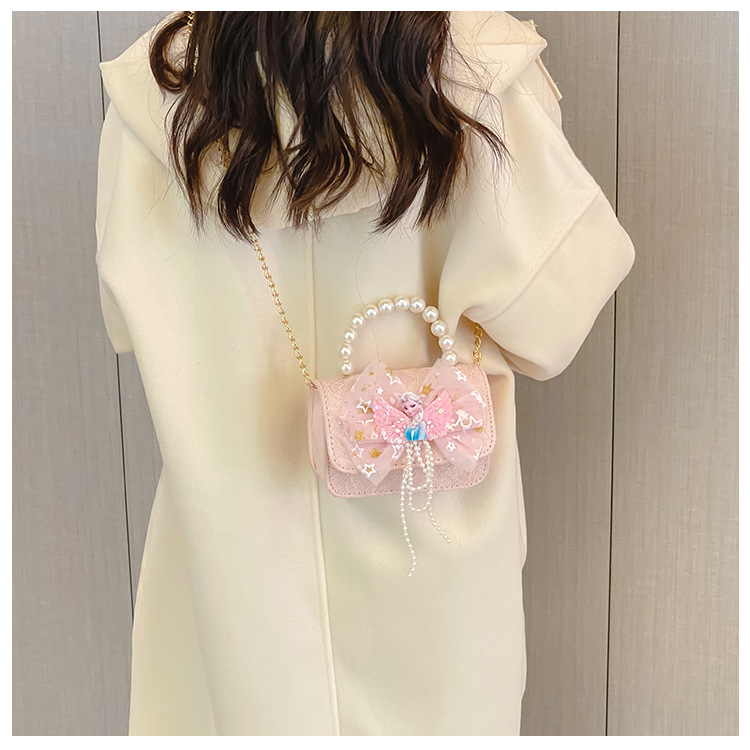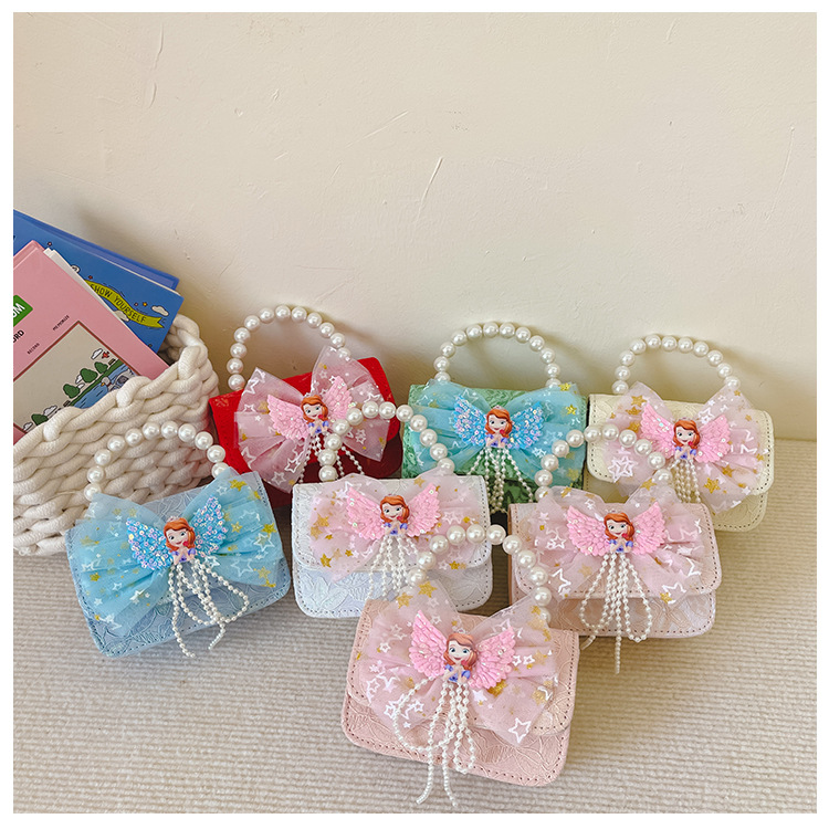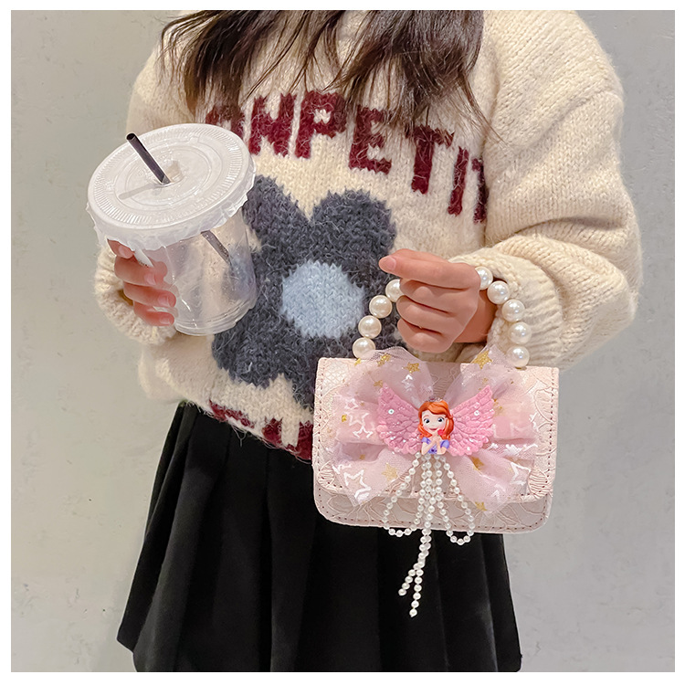 어린이 가방 봄과 여름 진주 장식 공주 핸드백 소녀 패션 귀여운 서양식 크로스 바디 배낭 도매스토어 가기
