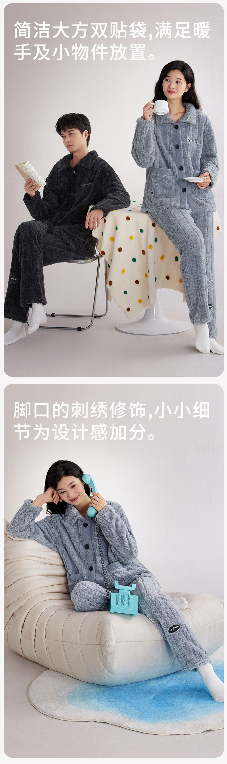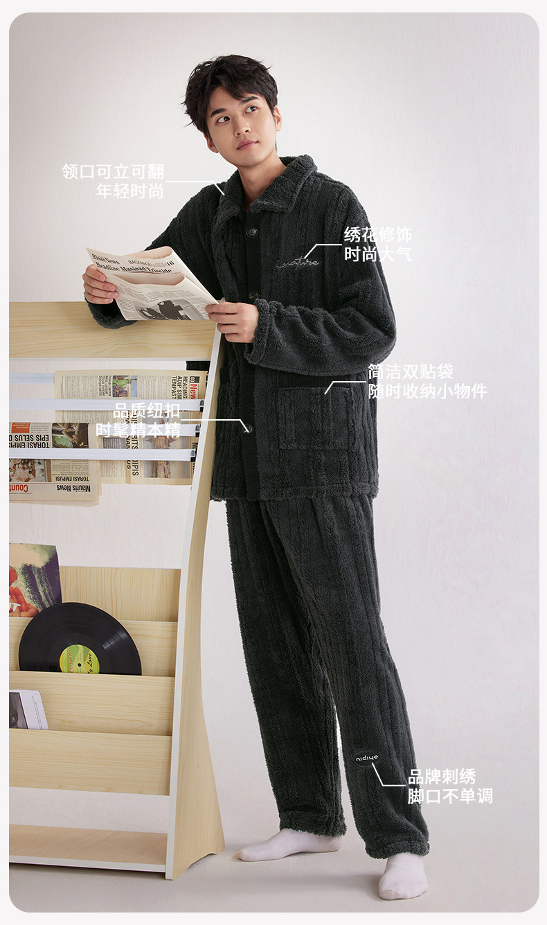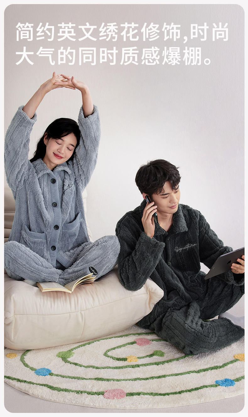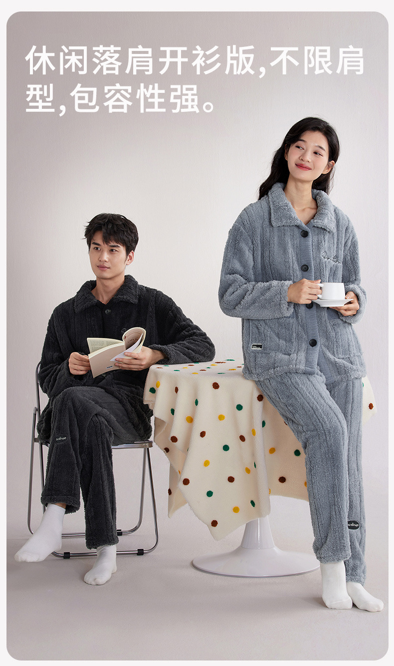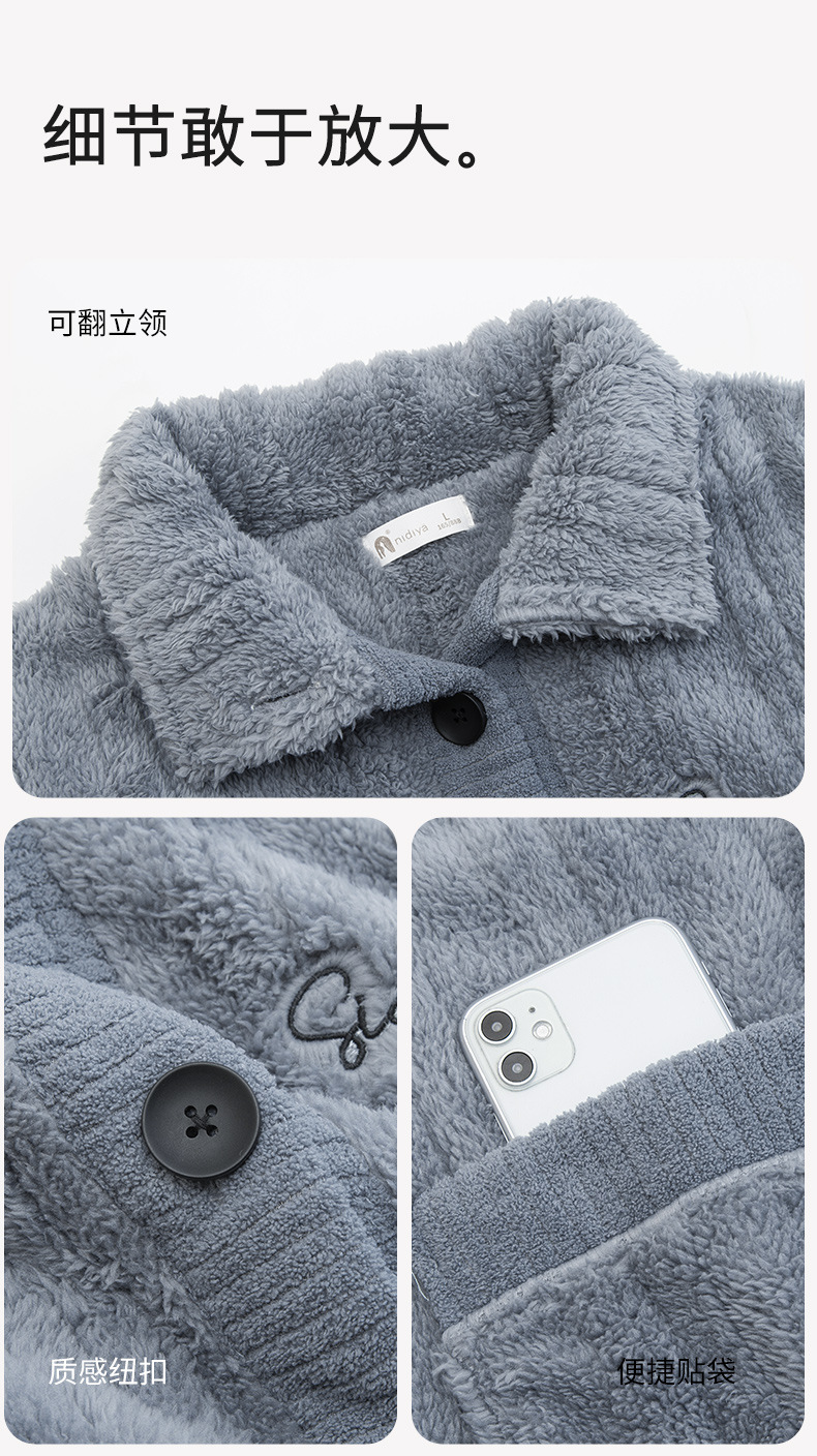 Nidiya 잠옷 여성의 겨울 산호 양털 따뜻한 스탠드 칼라 남성 캐주얼 카디건 패션 스트라이프 홈웨어 세트