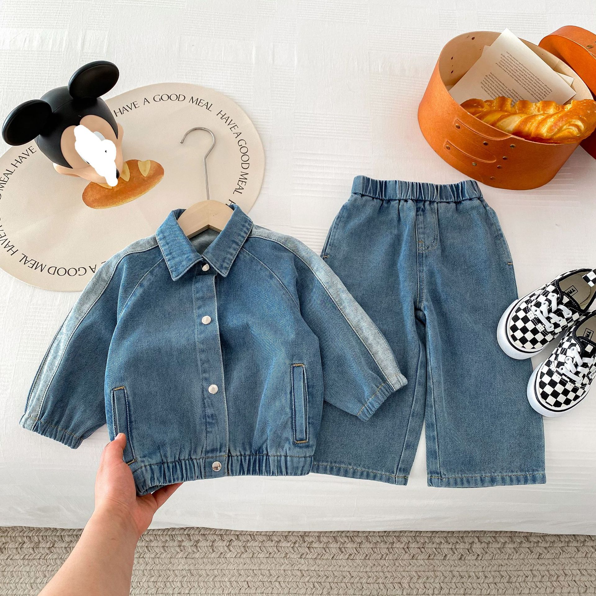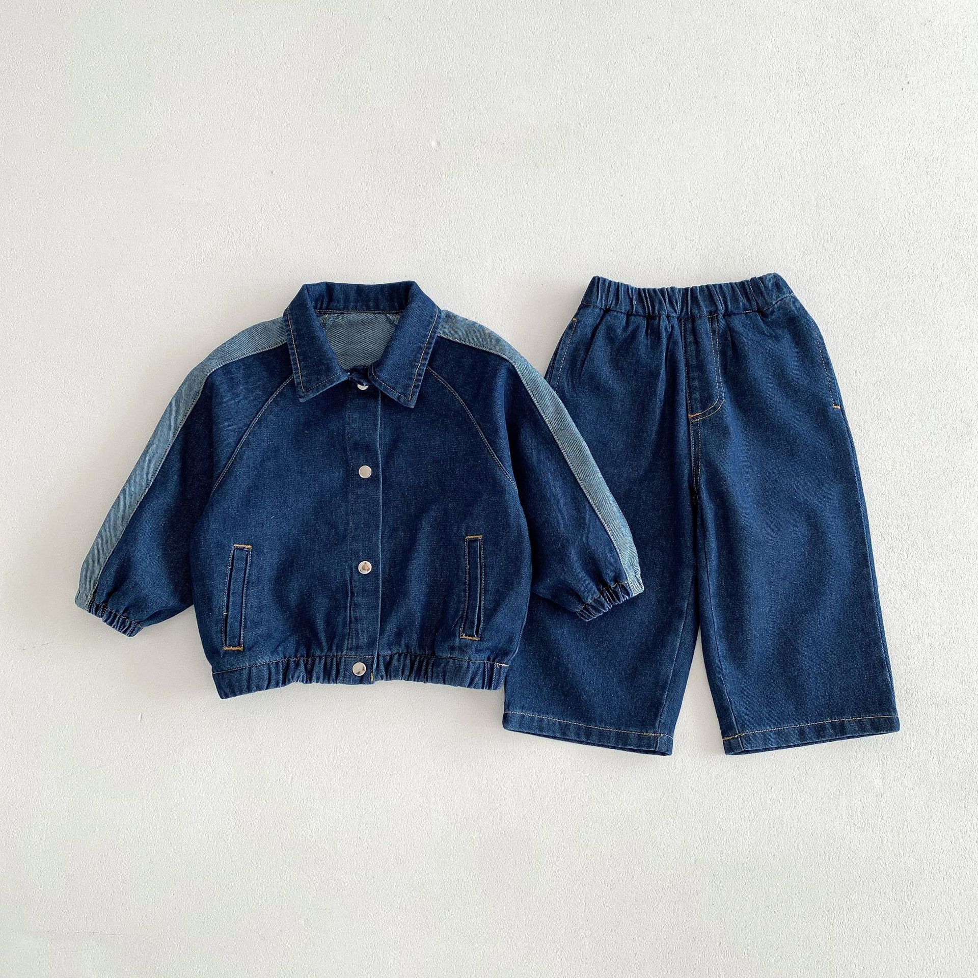 2025 새로운 봄 한국 스타일 데님 정장 소년과 소녀 카디건 긴팔 재킷 탑과 트렌디 캐주얼 바지