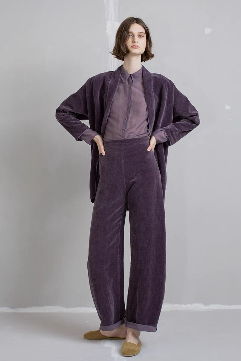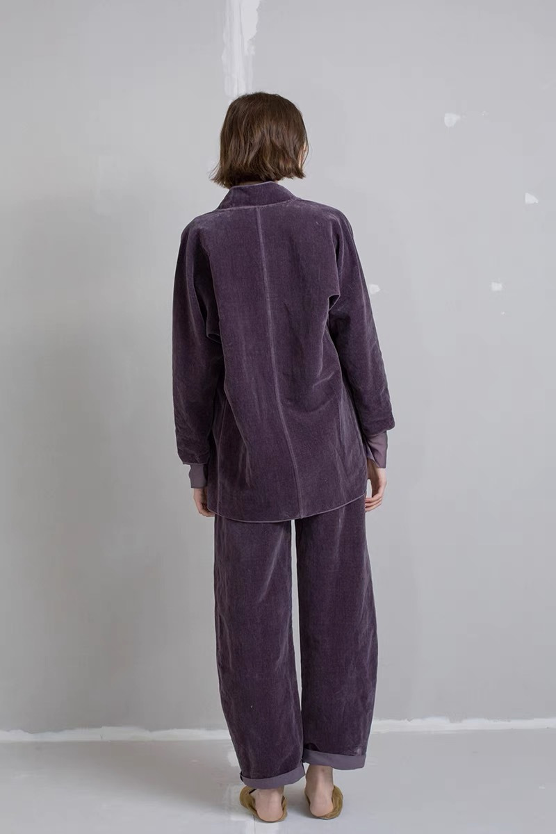 스페인 특산품~ 봄가을 여성용 벨벳 스탠드 칼라 무지퍼 상의 자켓 캐주얼 팬츠 고급 세트