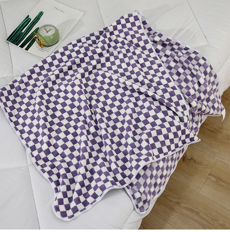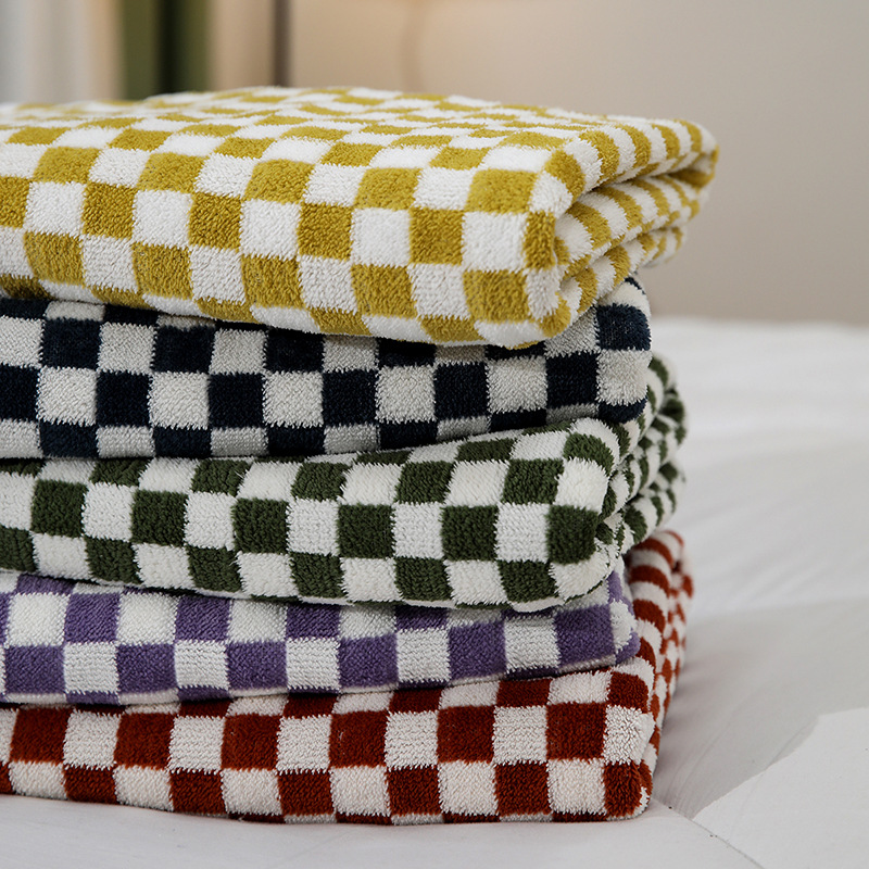 목욕 타월 산호 벨벳 체커보드 무늬 목욕 타월 여성용 가정용 면 함유 흡수성 빠른 건조 두꺼운 대형 목욕 타월 성인용 흡수성 목욕 타월