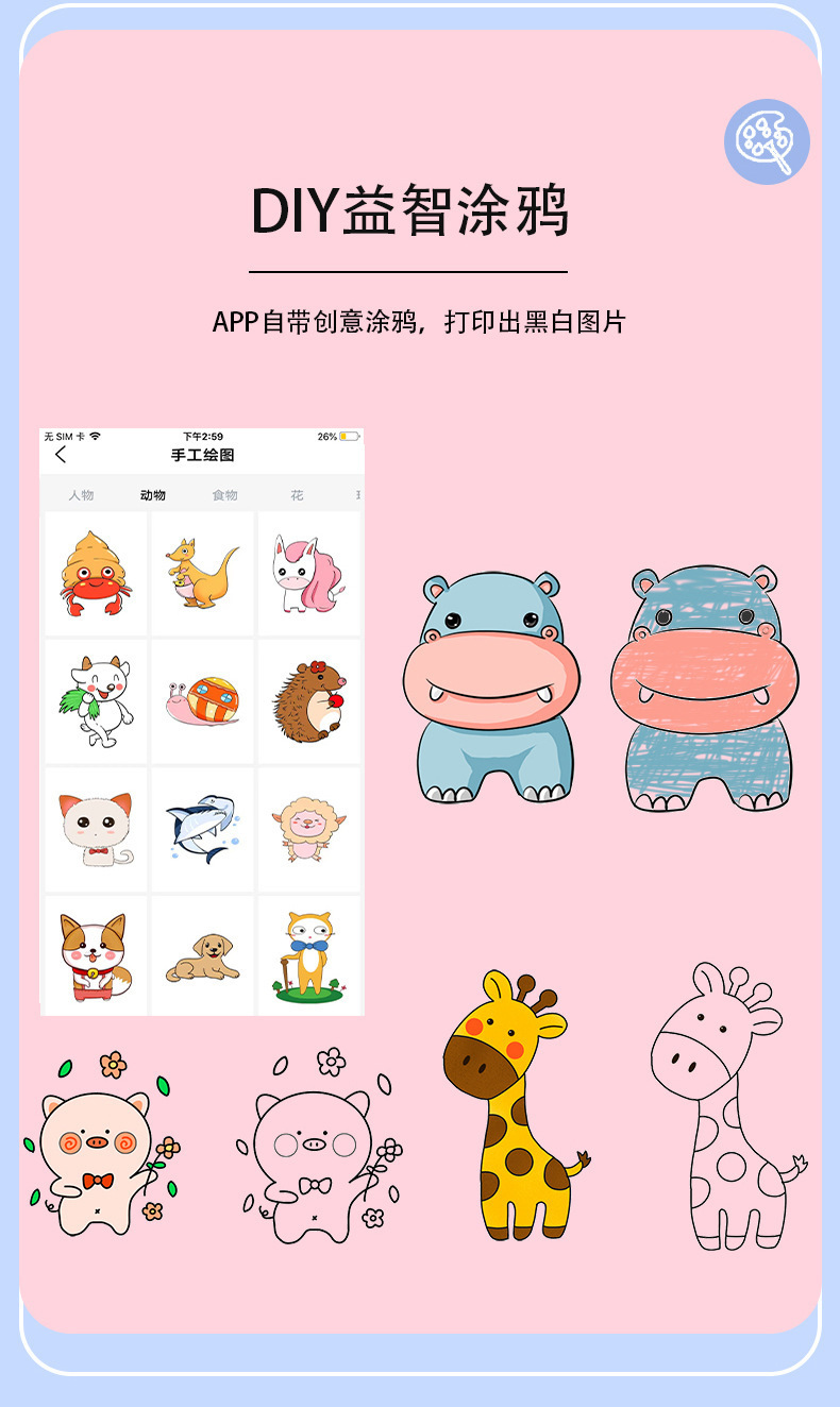 ②可WIFI连接手机打印手机照片,打印文档,打印错题,相机与手机照片视频互传功能, APP设有:便签打印(亚马逊众筹便签机同款功能):13种便笺打印模板?/21种清单打印模板/150种以上绘画模板