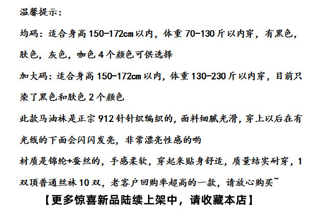 YH 말 오일 양말 100% 오일 밝은 부드러운 검은 스타킹 플러스 사이즈 내구성 얇은 투명 실키 8d 봄과 여름 팬티 스타킹 여성스토어 가기