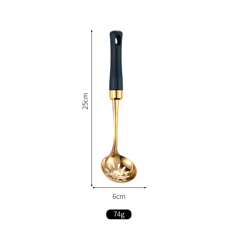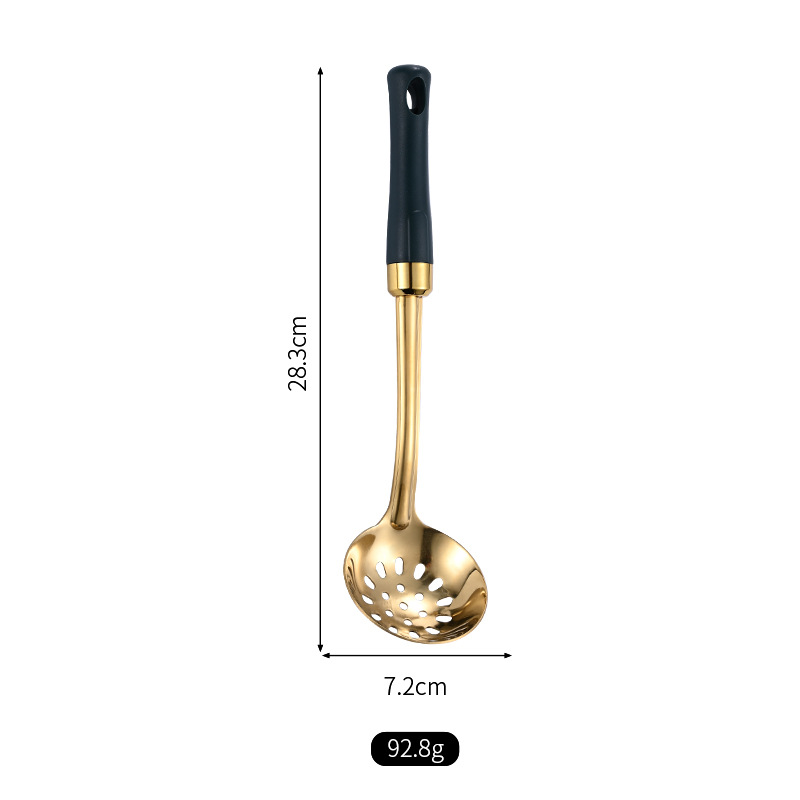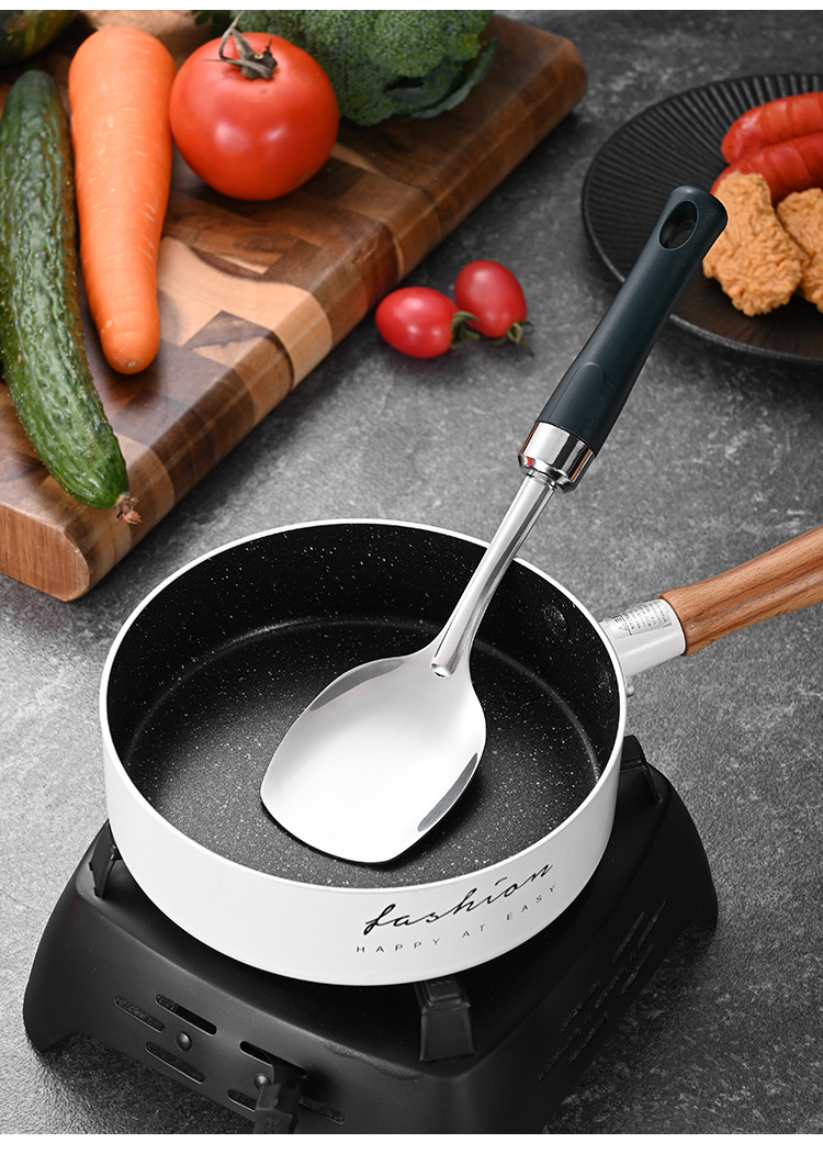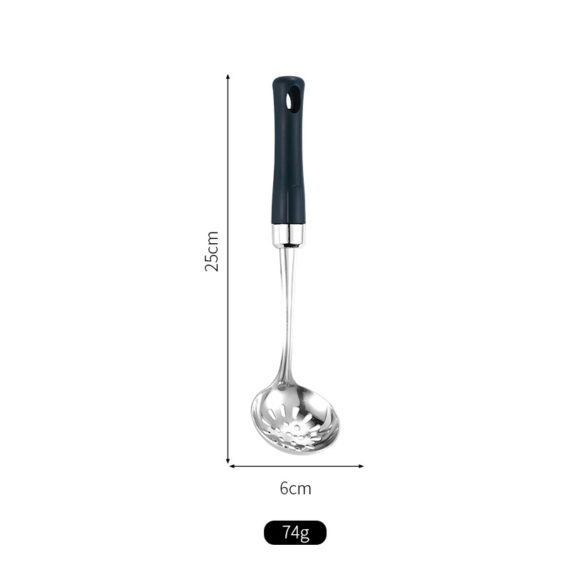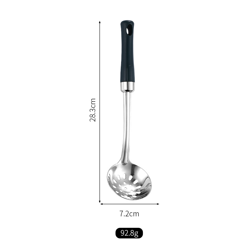 녹색 손잡이 비 자성 스테인레스 스틸 주걱 요리 삽 어린이 작은 주방 용품 숟가락 튀김 삽 냄비 숟가락 배수