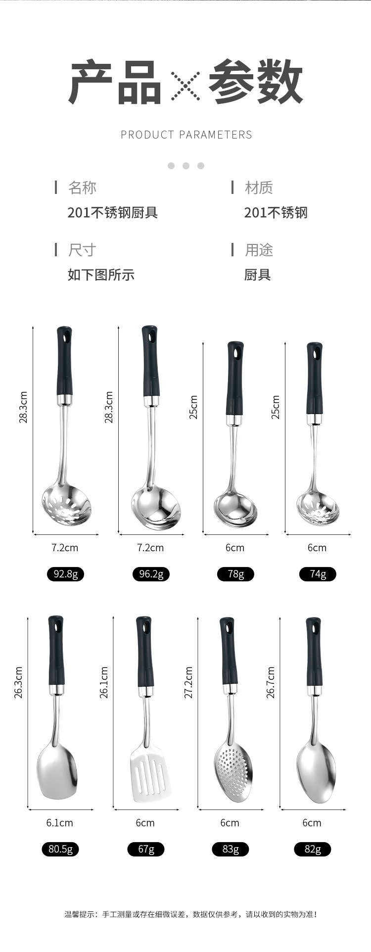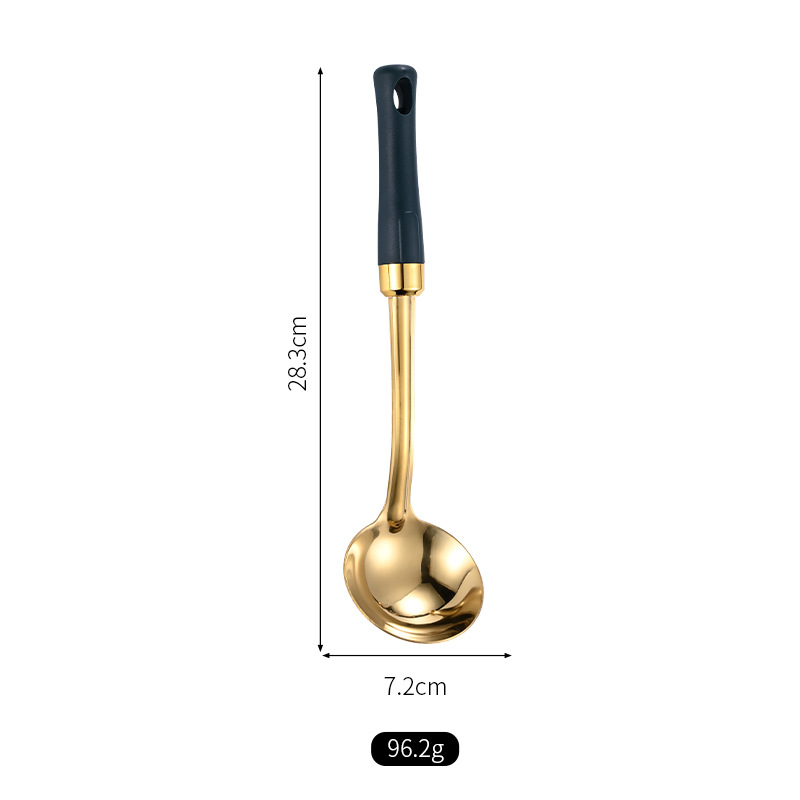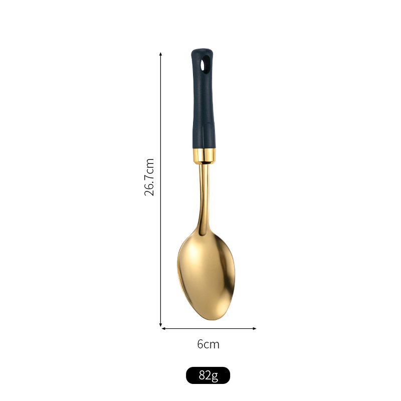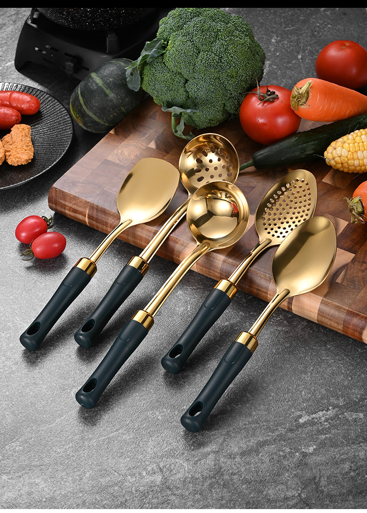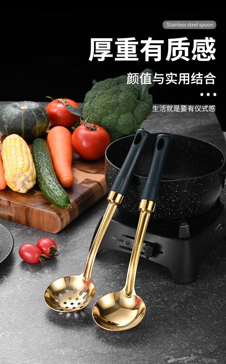 녹색 손잡이 비 자성 스테인레스 스틸 주걱 요리 삽 어린이 작은 주방 용품 숟가락 튀김 삽 냄비 숟가락 배수