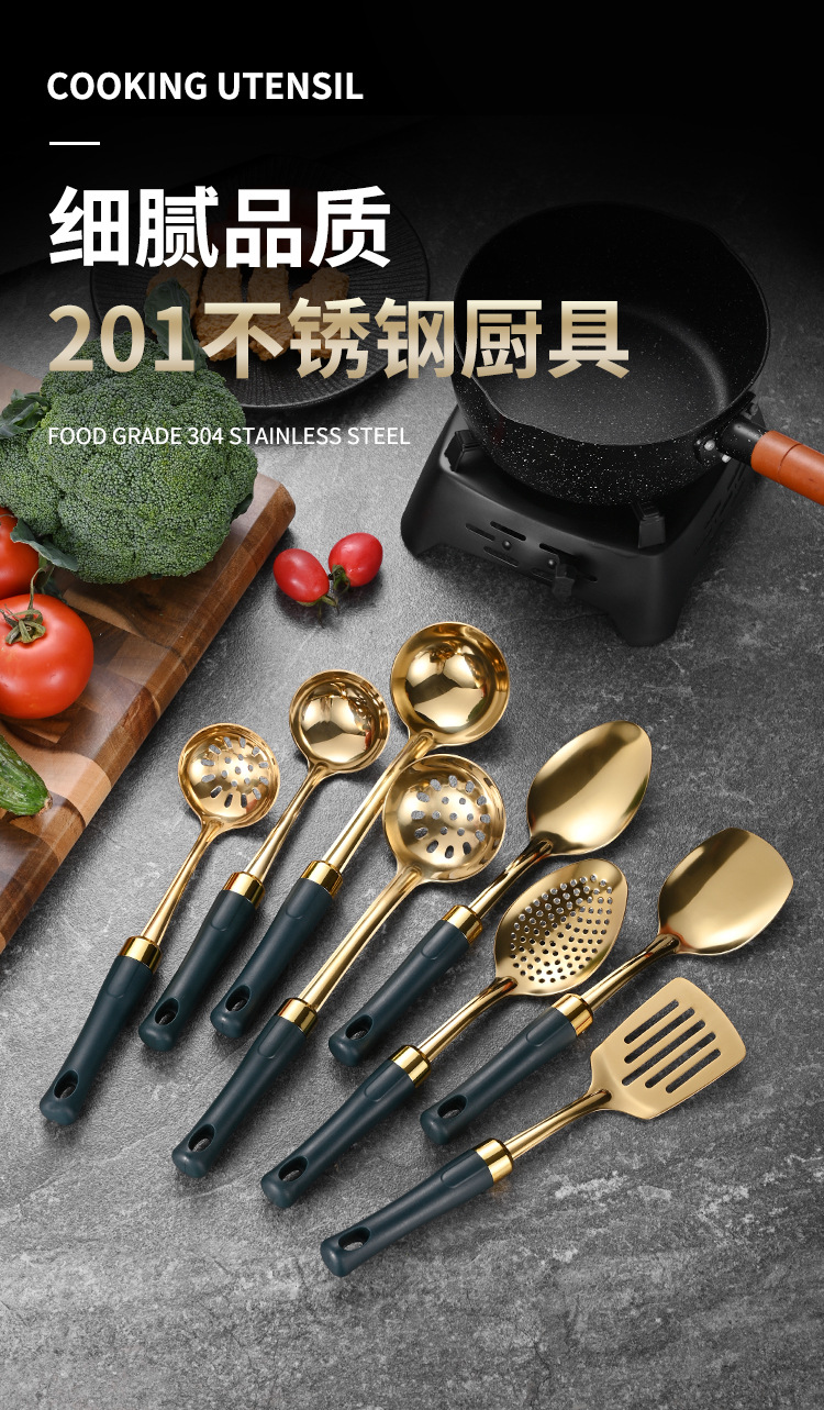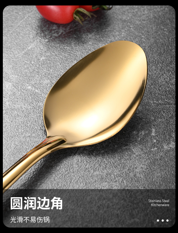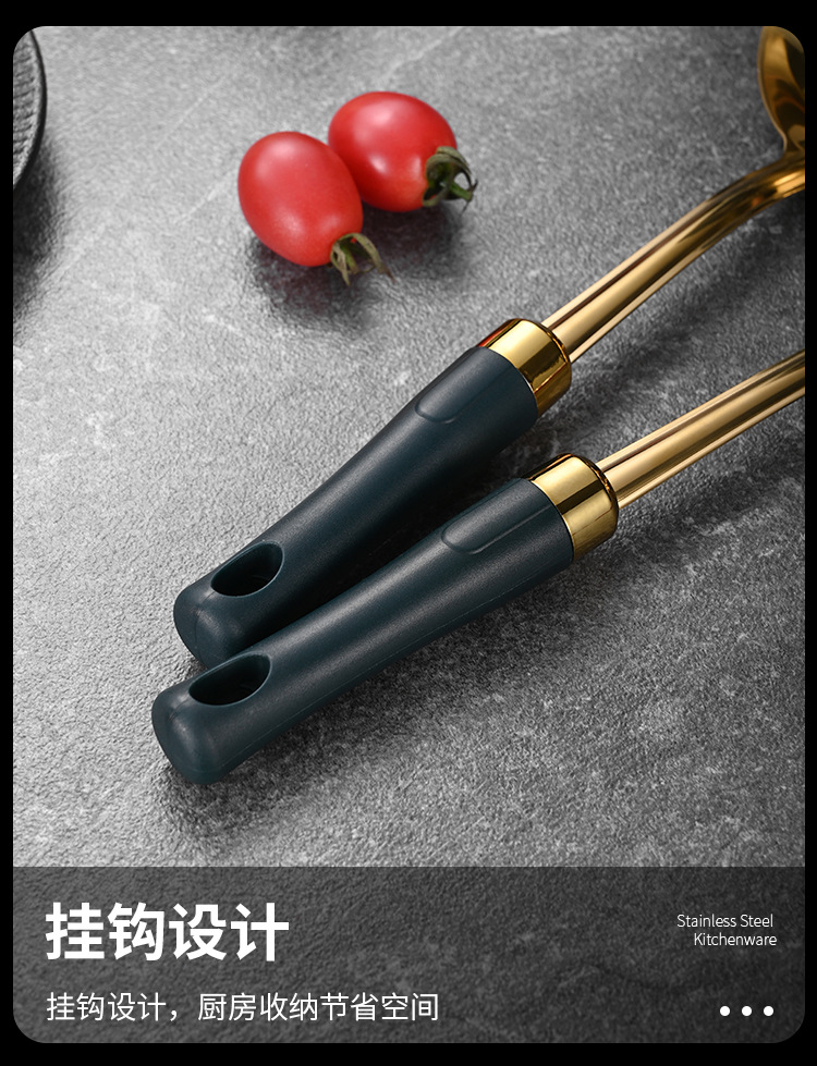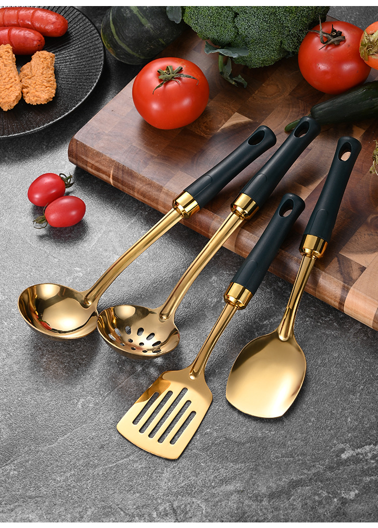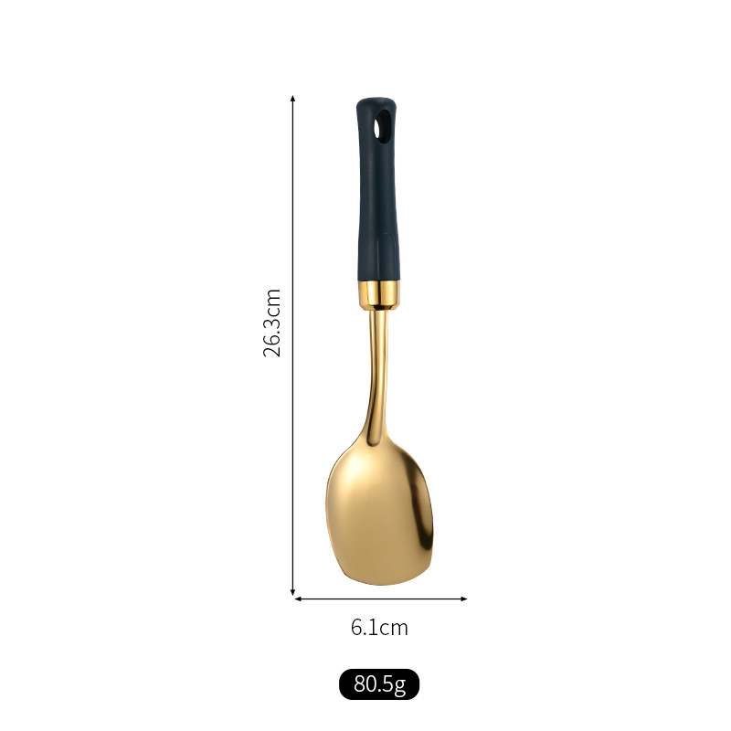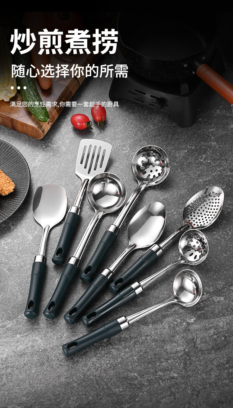 녹색 손잡이 비 자성 스테인레스 스틸 주걱 요리 삽 어린이 작은 주방 용품 숟가락 튀김 삽 냄비 숟가락 배수스토어 가기