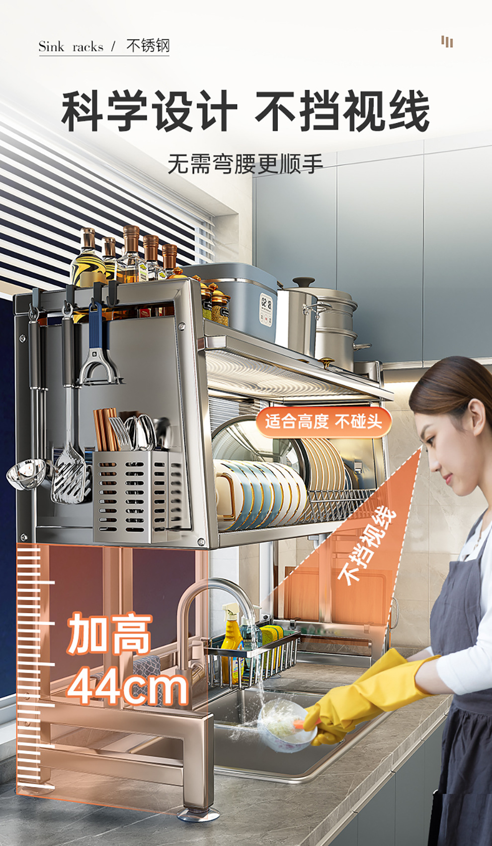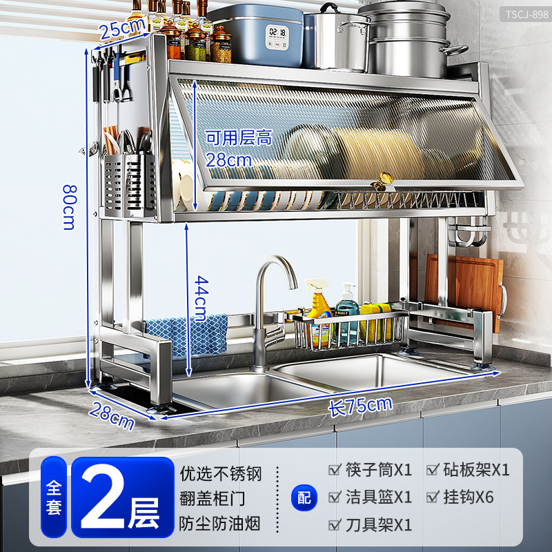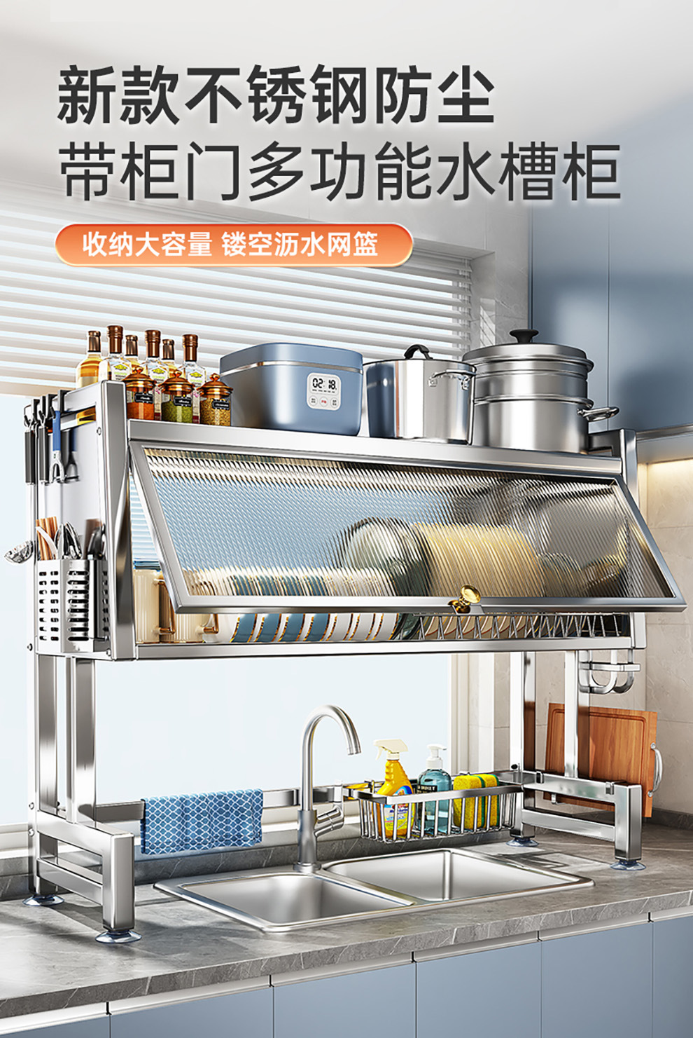 스테인레스 스틸 주방 싱크 저장 랙 가정용 요리 저장 싱크 식기 세척기 찬장 다기능 배수 랙스토어 가기