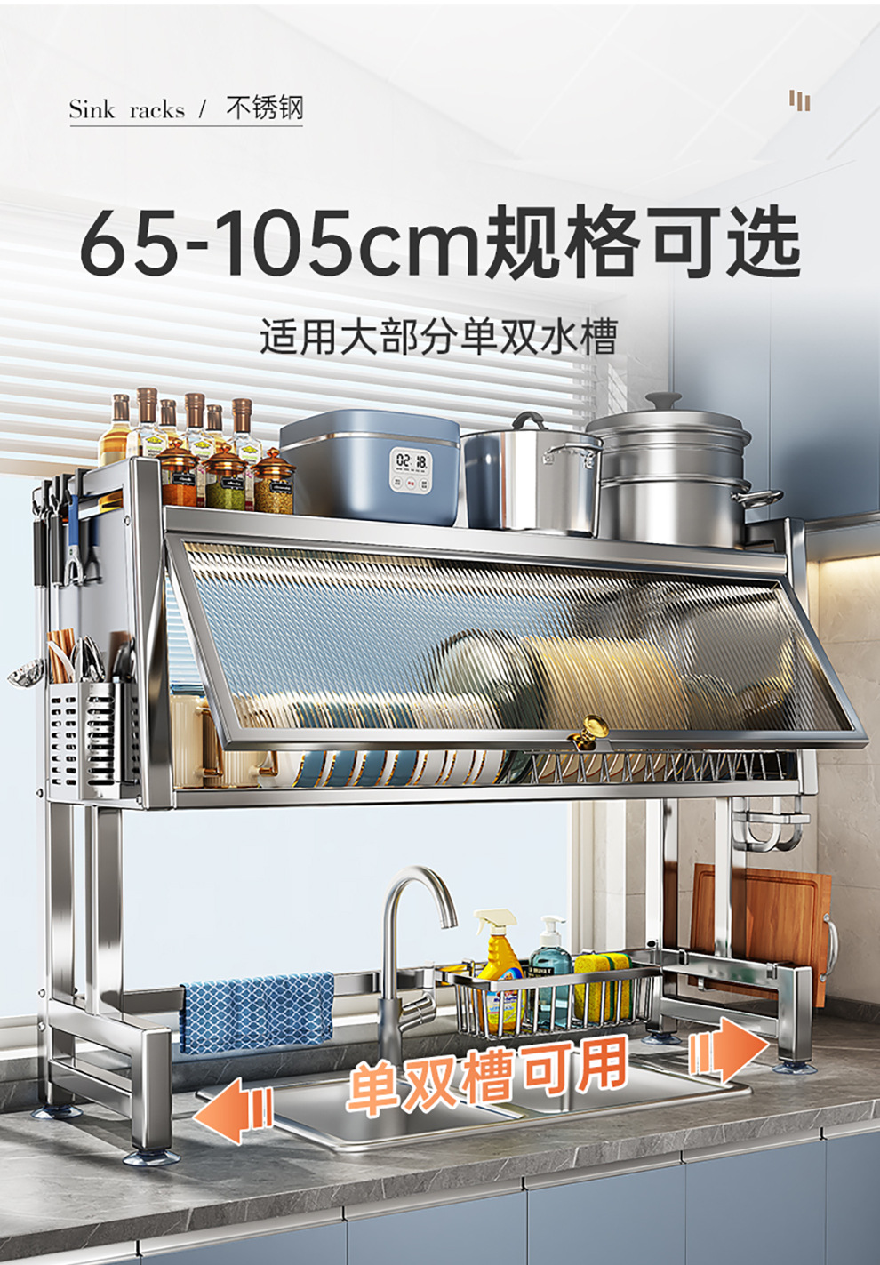 스테인레스 스틸 주방 싱크 저장 랙 가정용 요리 저장 싱크 식기 세척기 찬장 다기능 배수 랙
