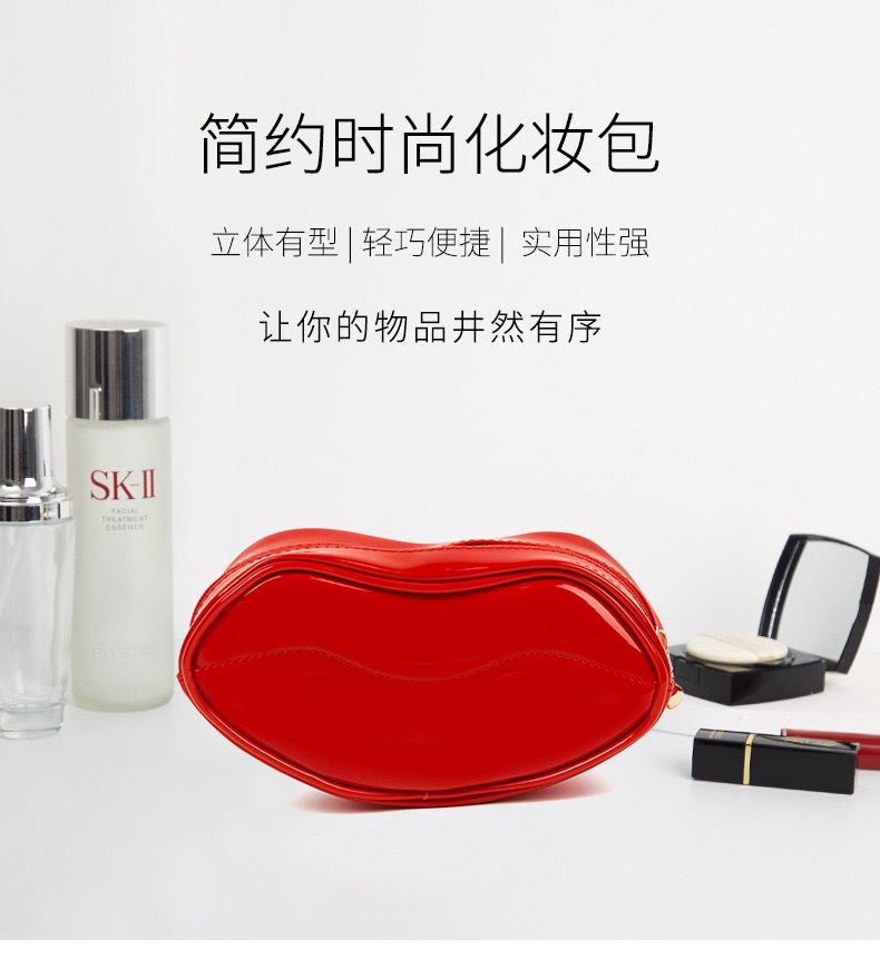 여성 패션 다기능 레드 립 모양 화장품 가방 휴대용 보관 동전 지갑 일상 여행 범용 고가치
