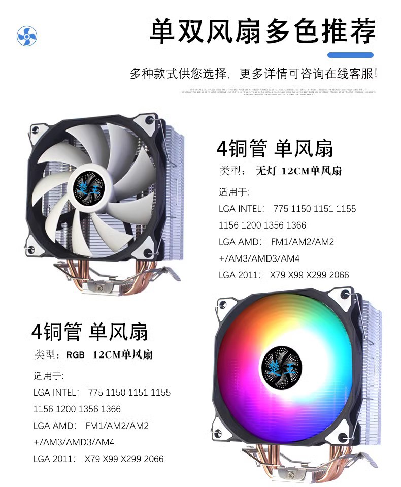 • 4120C 4 구리 튜브 12CM 컬러 라이트 팬