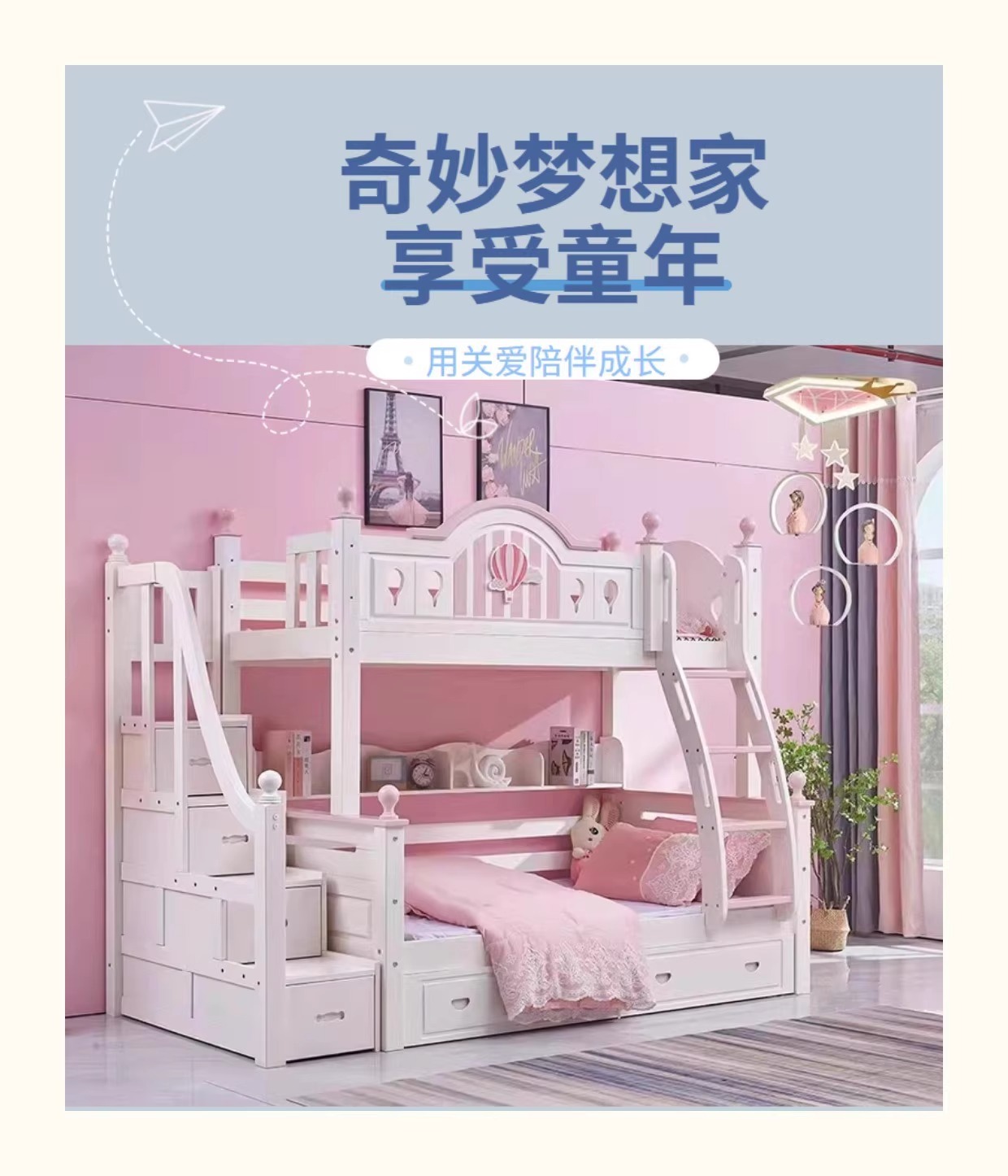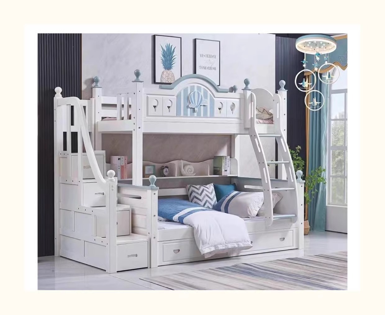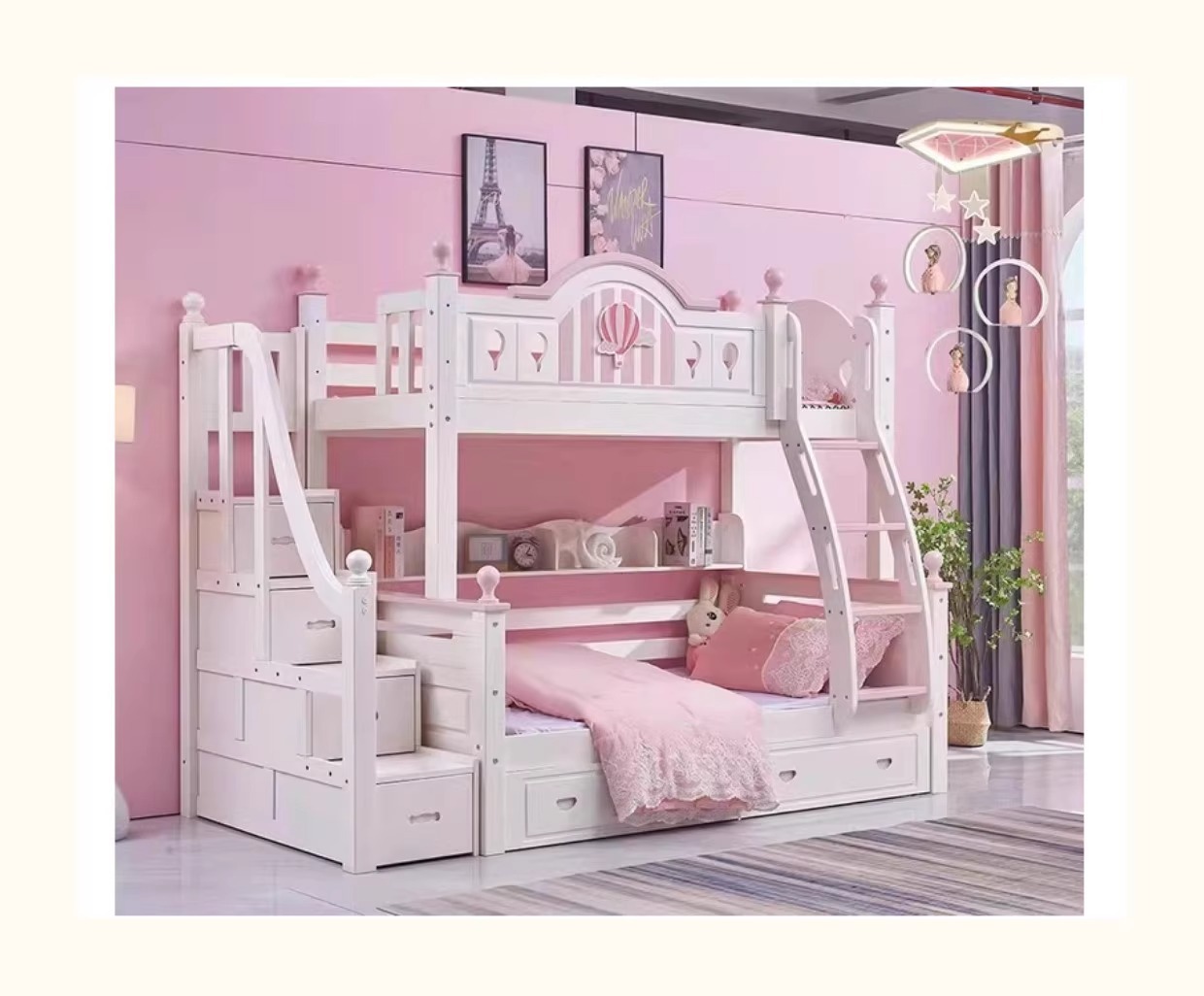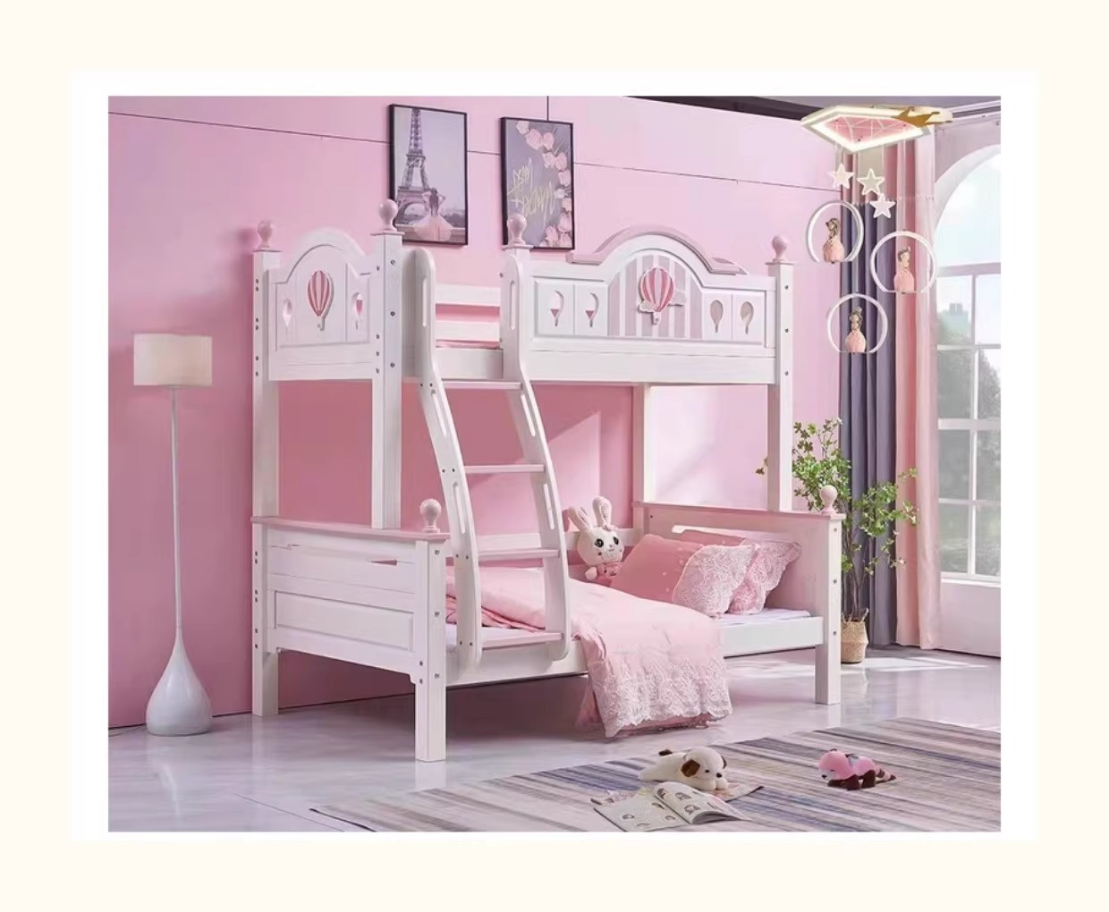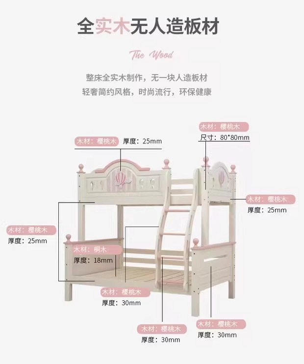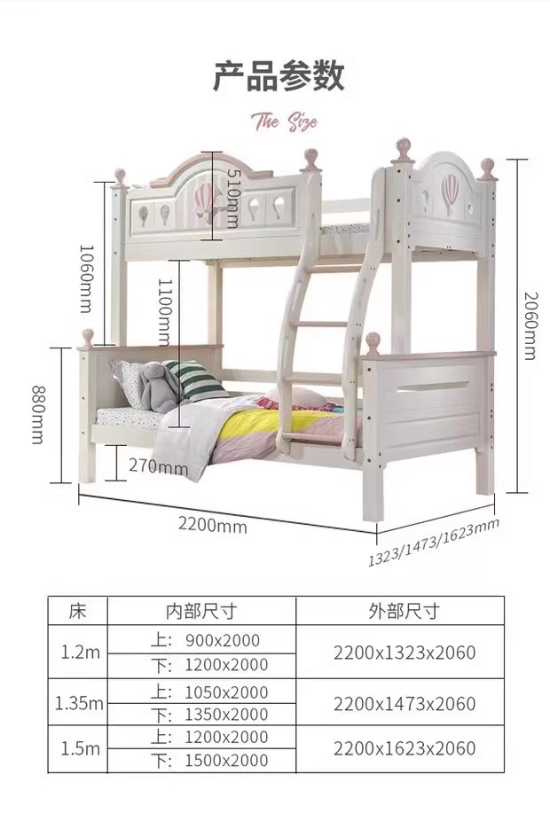 모든 단단한 나무 어머니 침대 소녀 공주 높고 낮은 침대 홈 어린이 침대 침대 현대 간단한 뜨거운 공기 풍선 침대