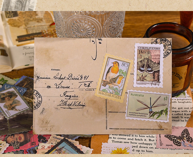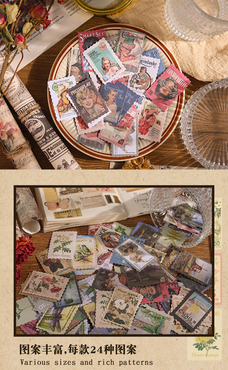 스탬프 박물관 저널 스티커 빈티지 스탬프 식물 꽃 나비 저널 소재 DIY 장식 작은 스티커스토어 가기