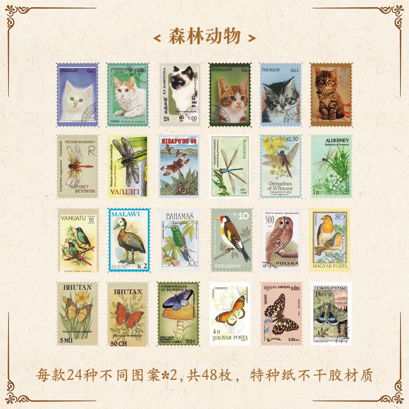 스탬프 박물관 저널 스티커 빈티지 스탬프 식물 꽃 나비 저널 소재 DIY 장식 작은 스티커
