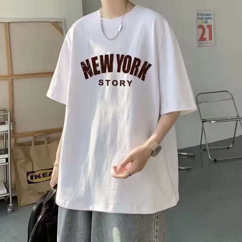 2024 새로운 남성 반팔 티셔츠 남성용 홍콩 스타일 느슨한 커플 여름, 트렌디 한 캐주얼 탑 내부 남성 의류스토어 가기