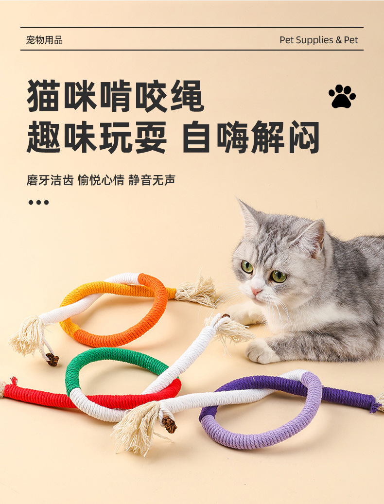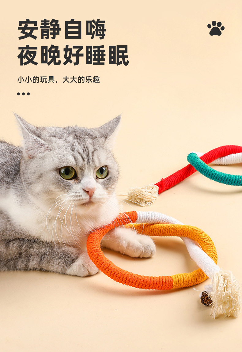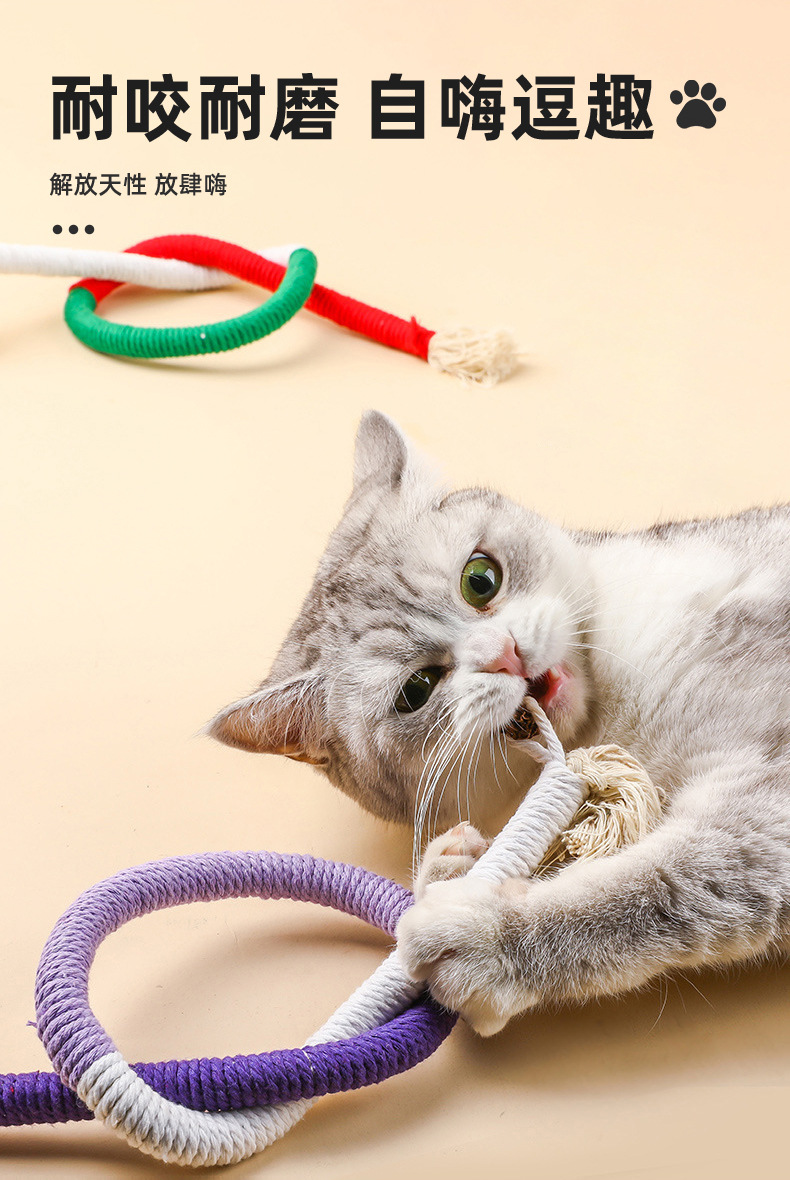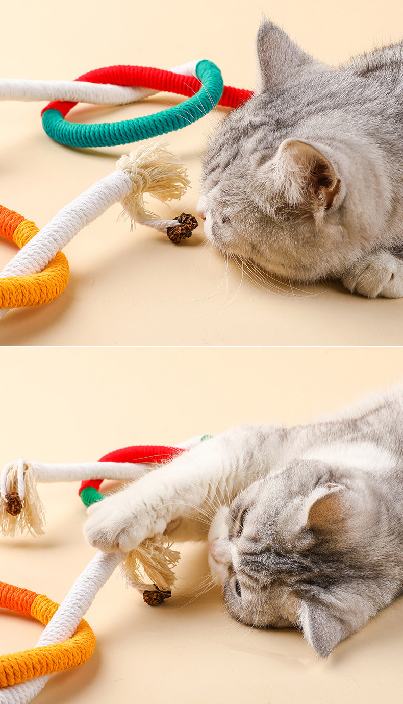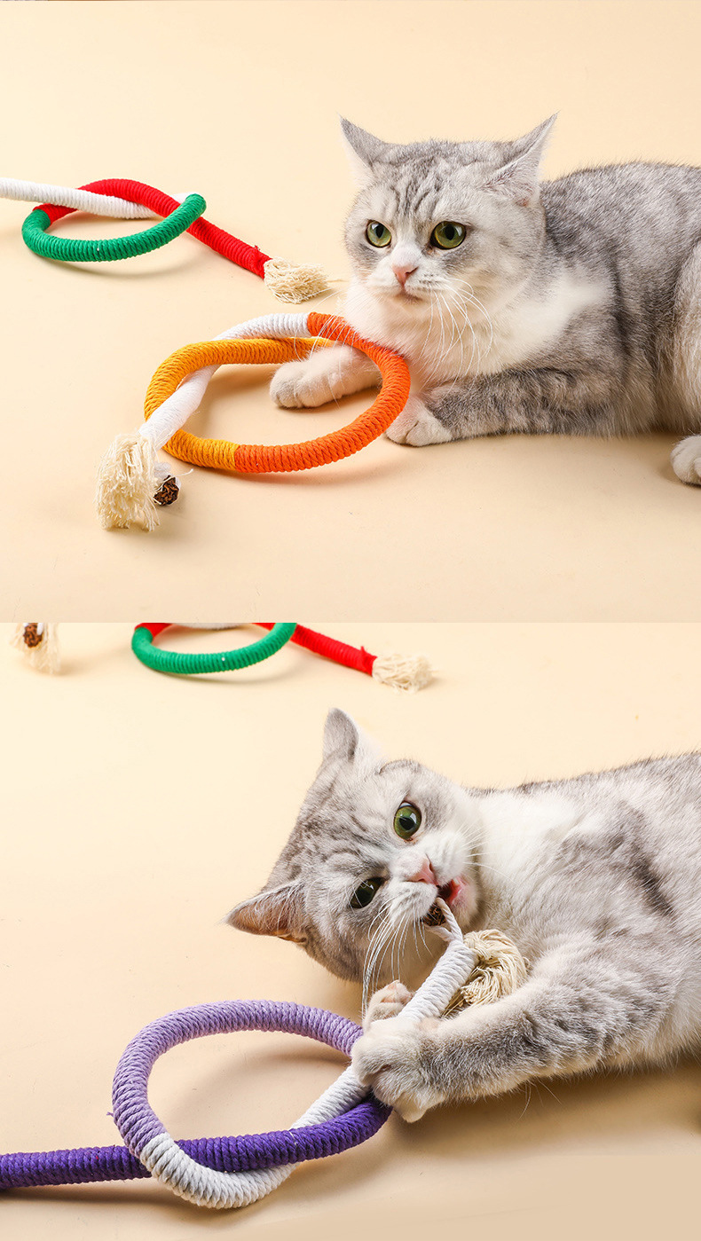 새로운 고양이 물린 밧줄 물린 연삭 고양이 장난감 환경 보호 면 로프 치아 청소 고양이 민트 재미있는 고양이 스틱 컬러 면 로프스토어 가기