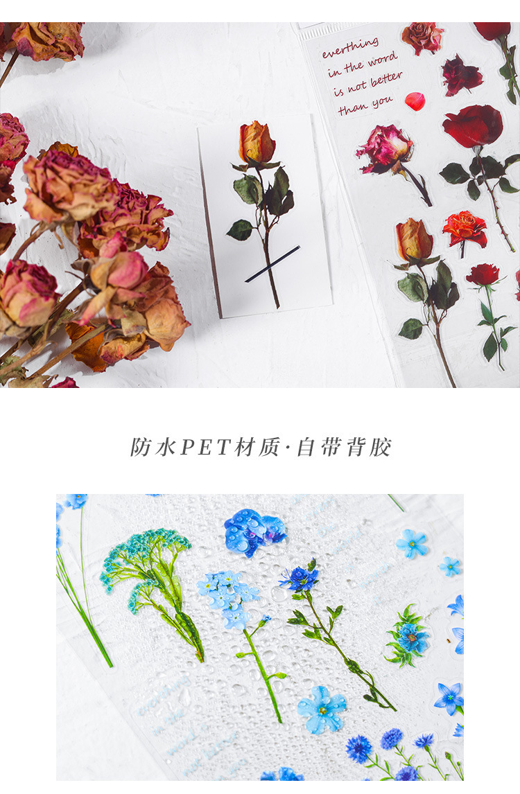 빈티지 식물 손 계정 스티커 애완 동물 투명 방수 손 계정 스티커 꽃 컵 DIY 장식 스티커 도매