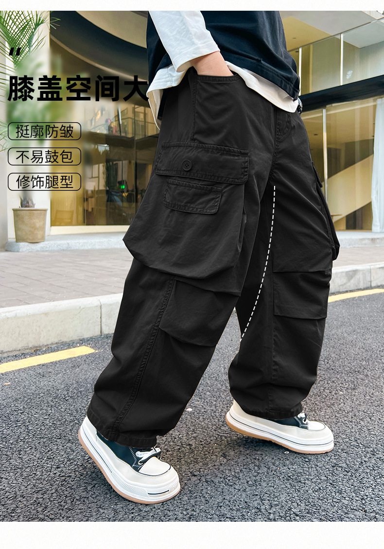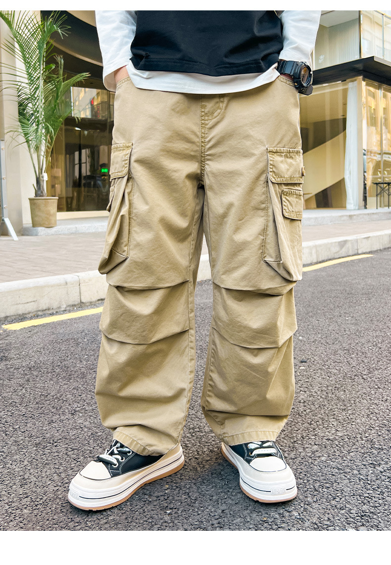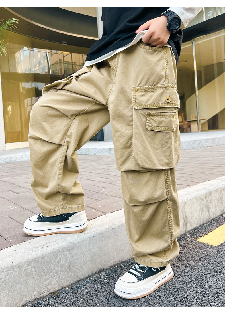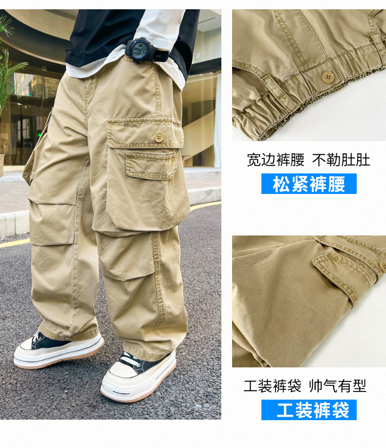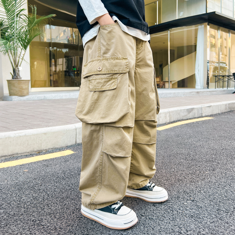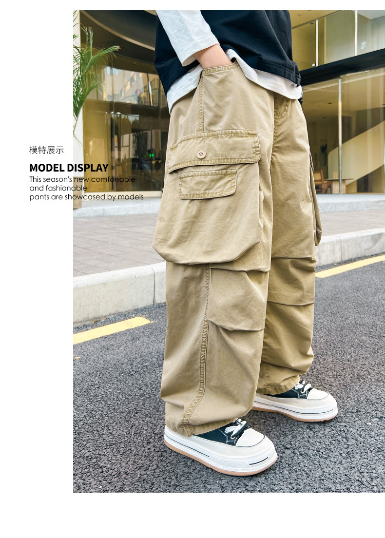 봄 소년 바지 새로운 중형 및 대형 어린이 소년 대형 포켓 캐주얼 바지 트렌디 한 멋진 맞춤형 어린이 바지 배달