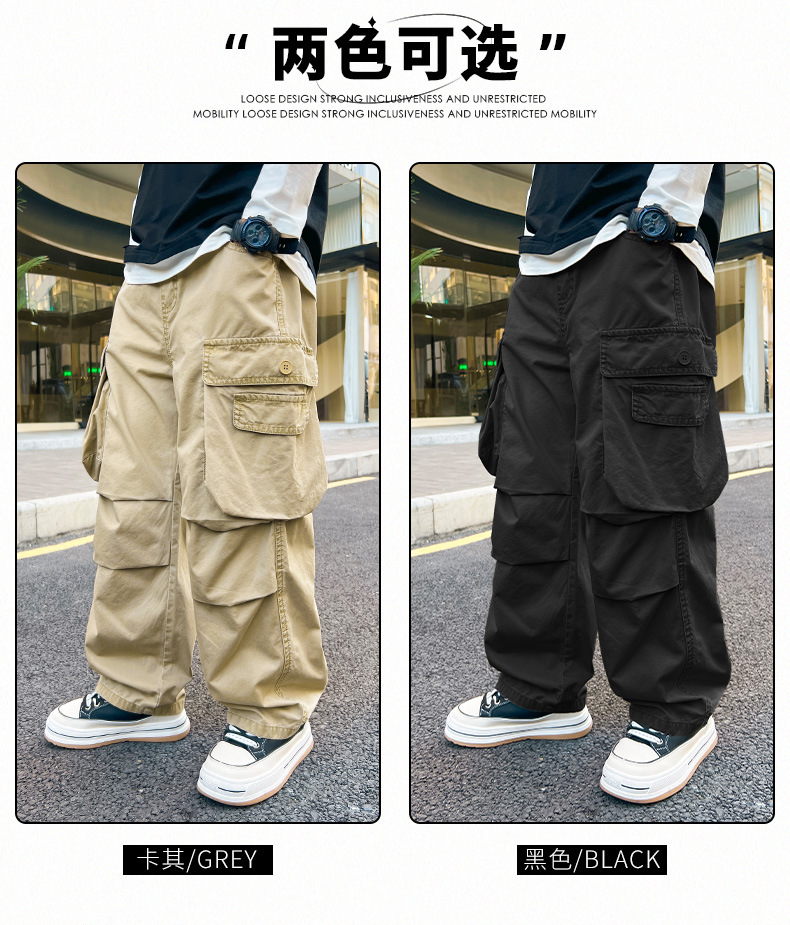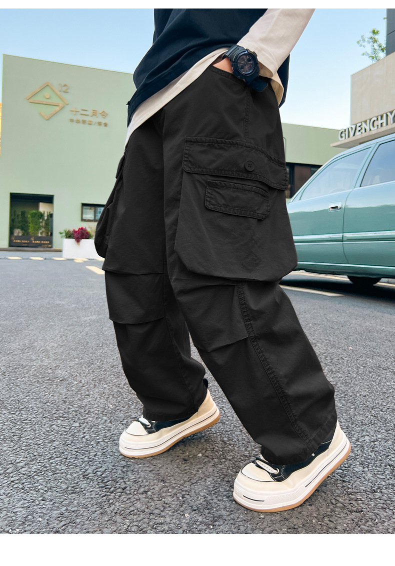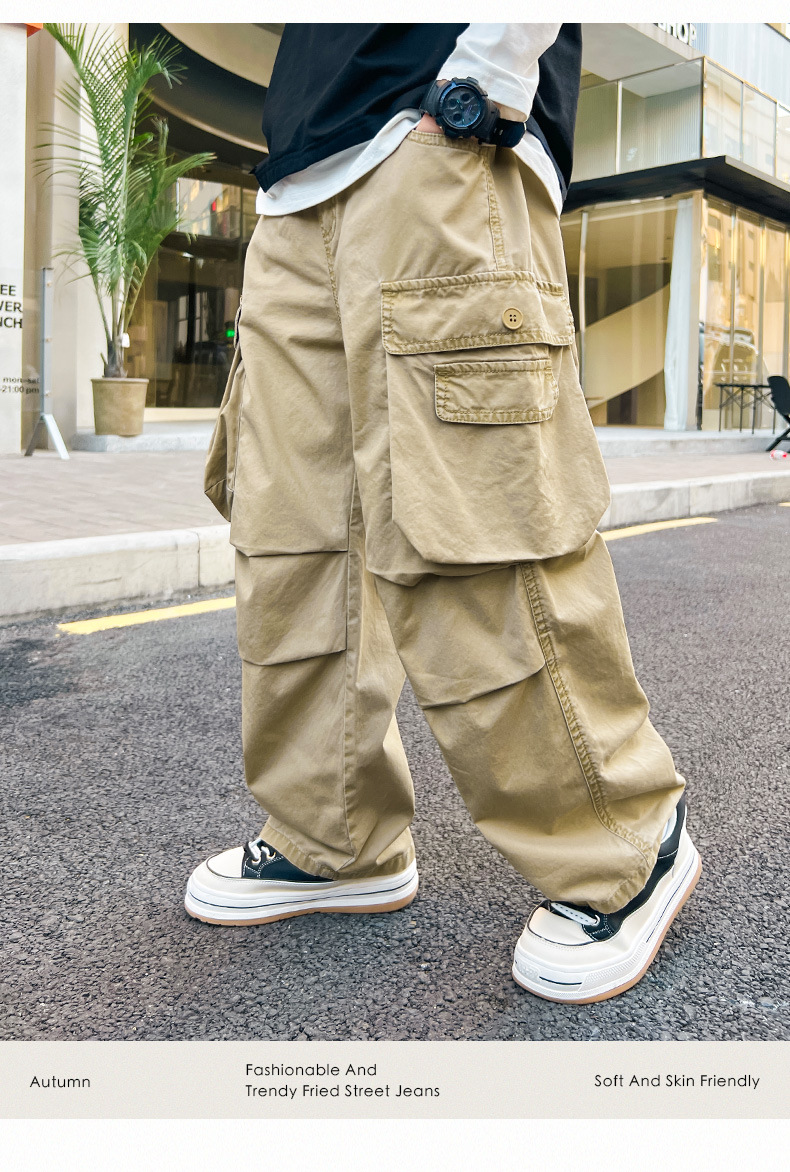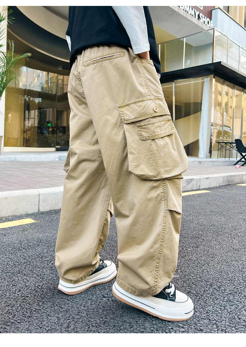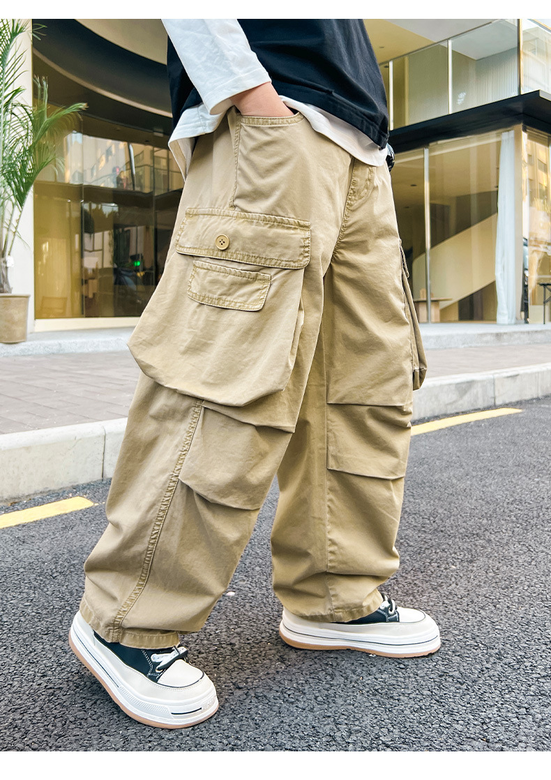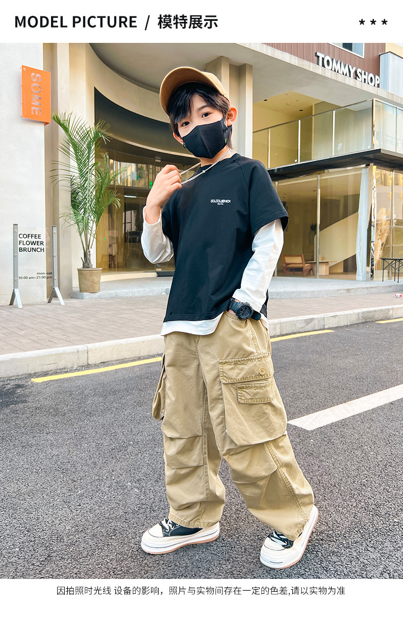 봄 소년 바지 새로운 중형 및 대형 어린이 소년 대형 포켓 캐주얼 바지 트렌디 한 멋진 맞춤형 어린이 바지 배달
