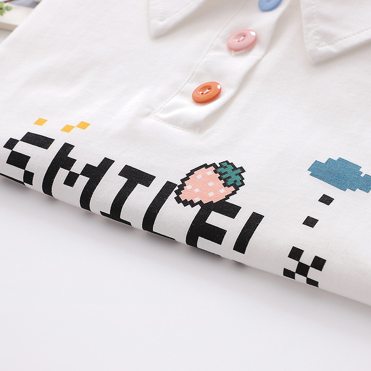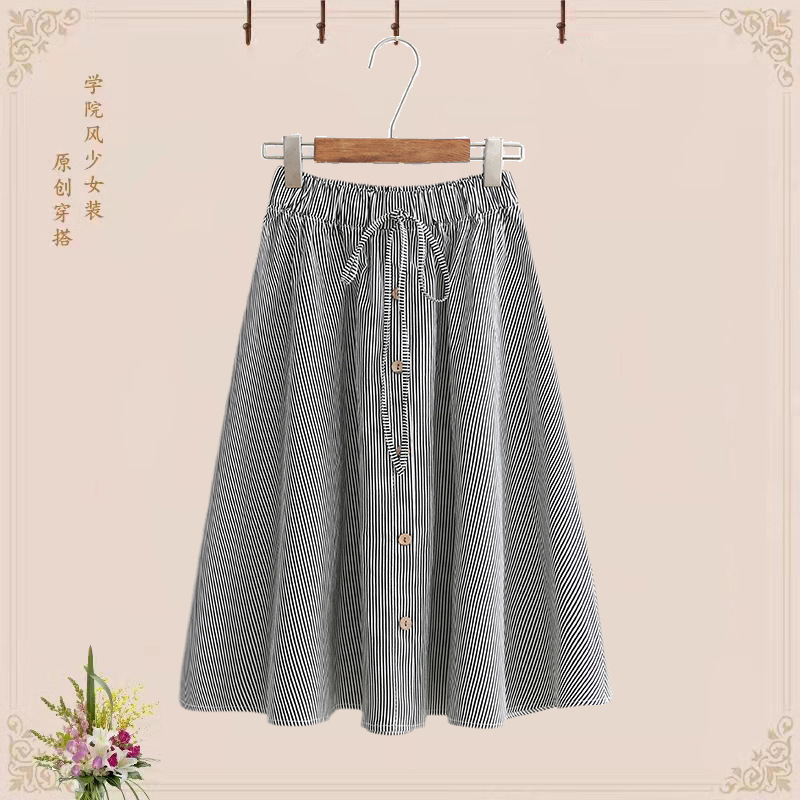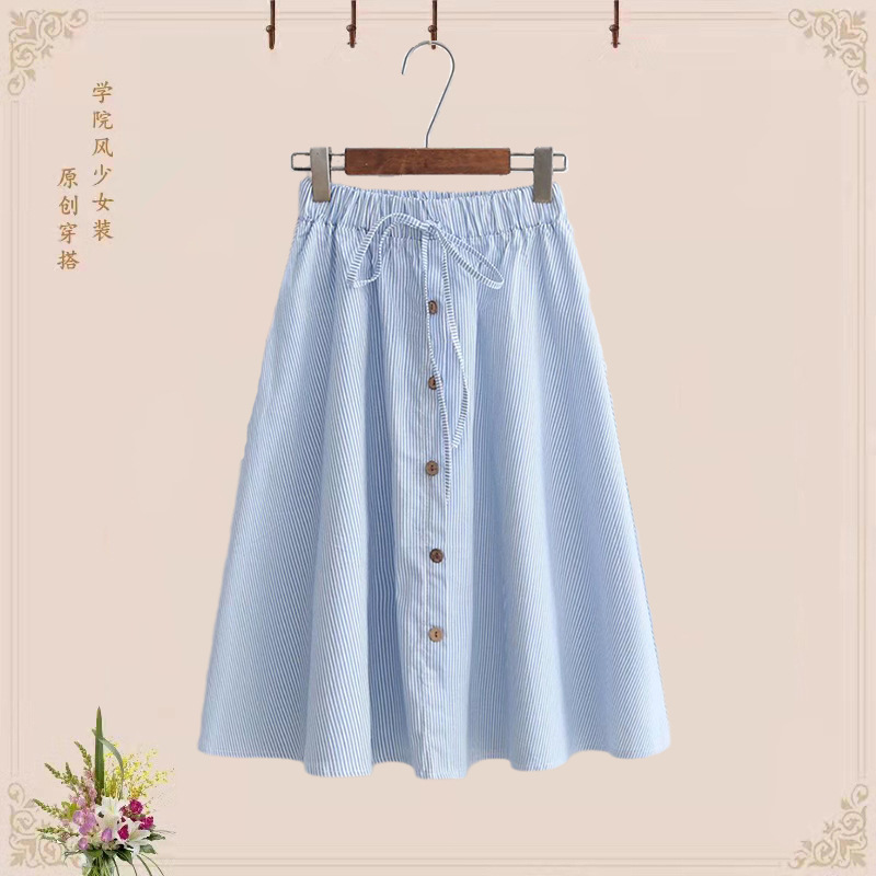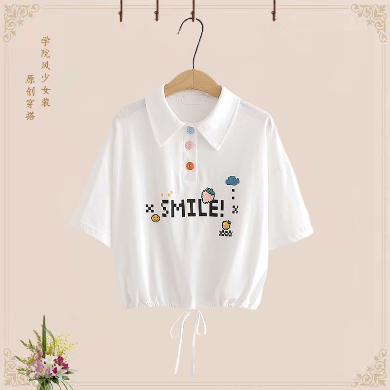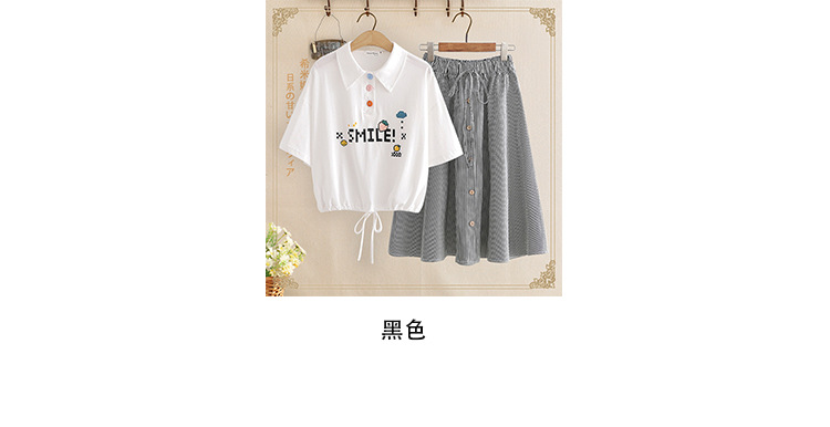 달콤한 중학교 소녀 칼라 + 높은 허리 중간 길이 스커트 세트 스커트 투피스 세트 여름 짧은 티셔츠스토어 가기