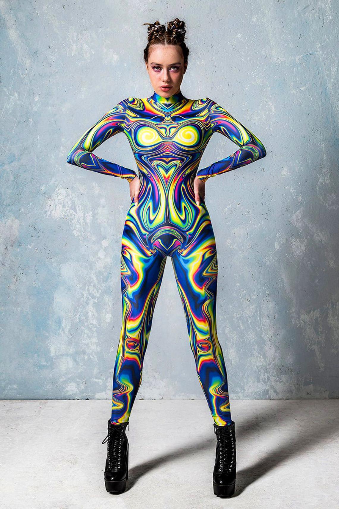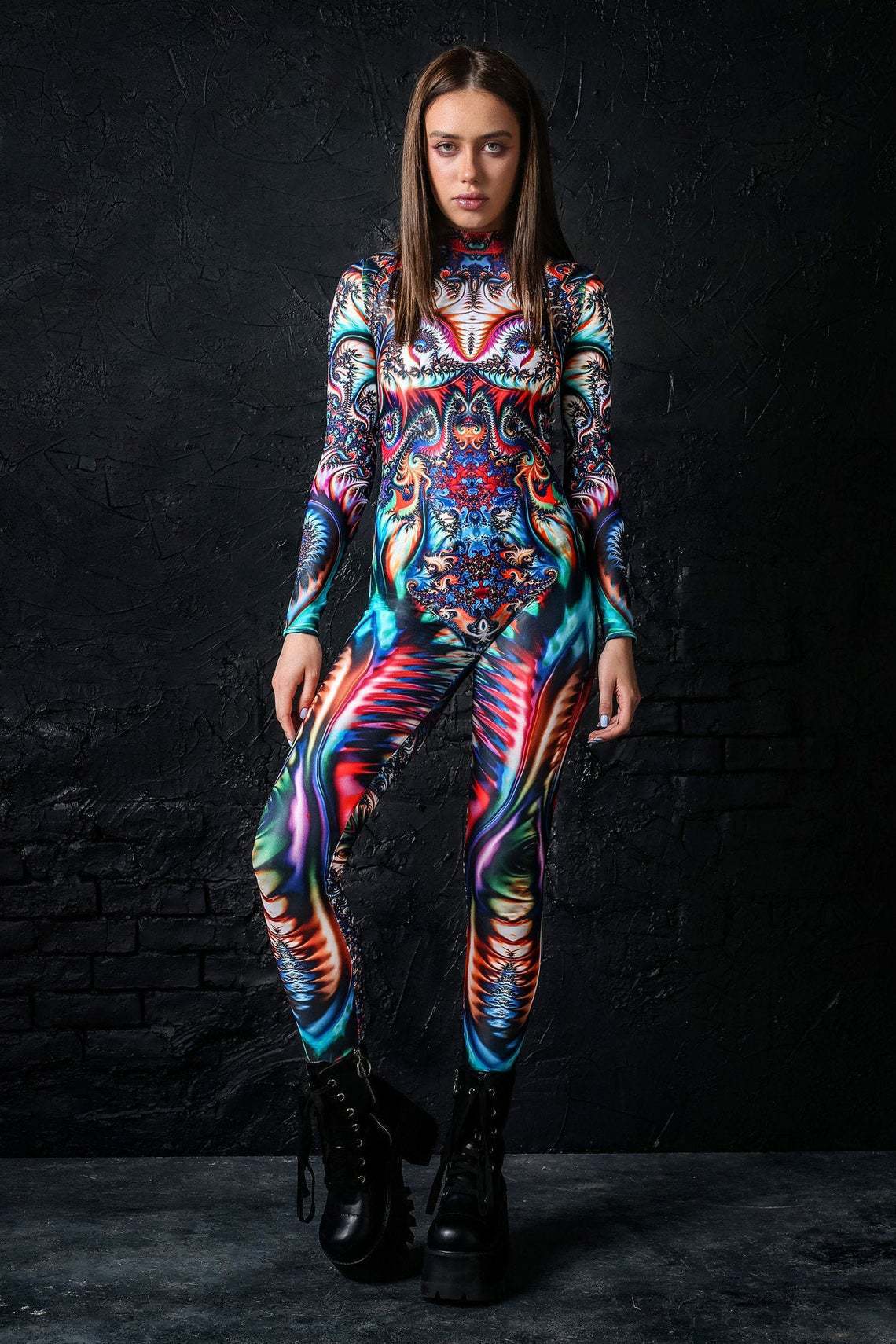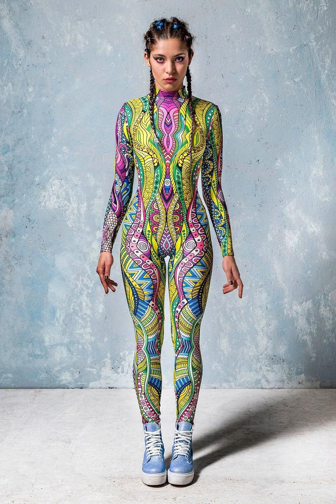 2023 유럽과 미국의 원피스 타이츠 그린 패션 질감 3D 디지털 인쇄 점프 수트 코스프레 여성 원피스스토어 가기