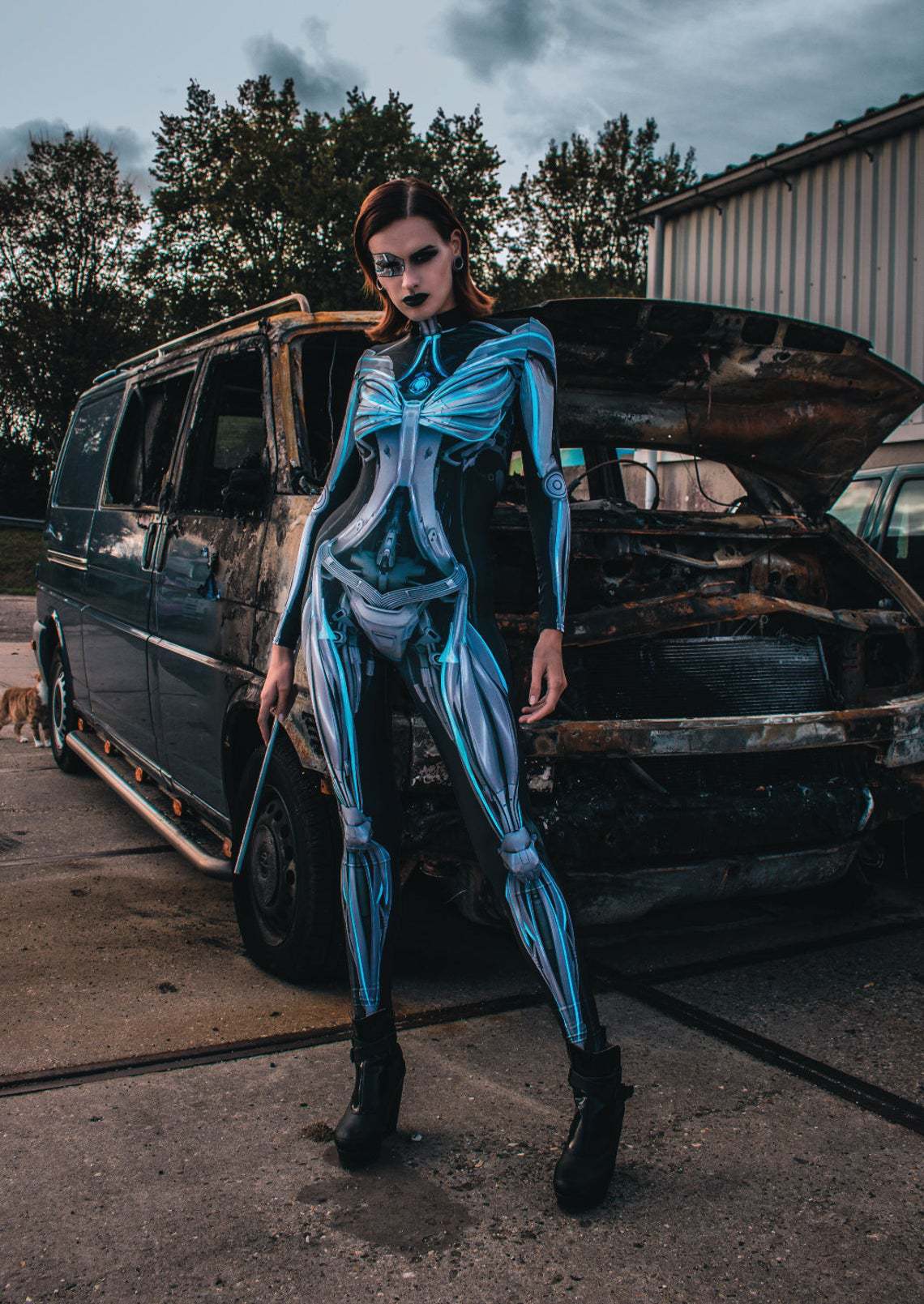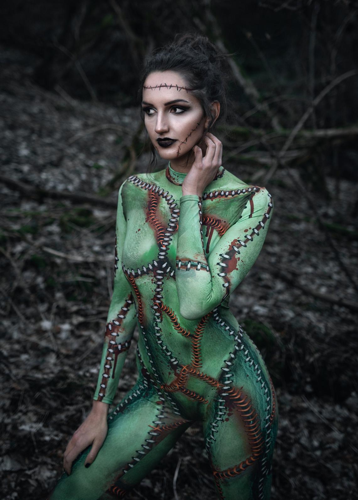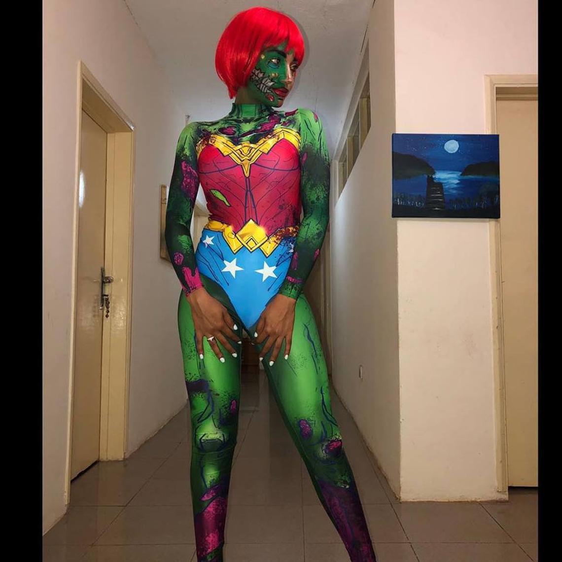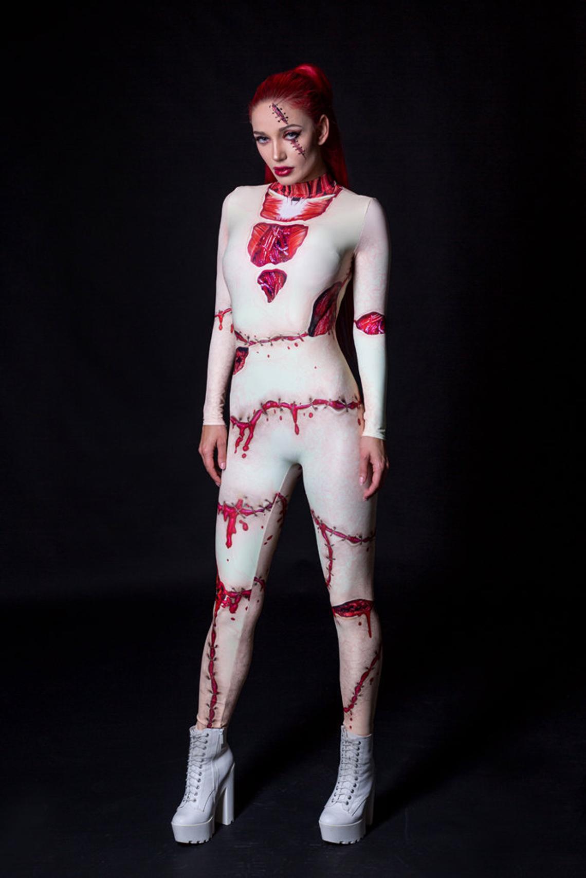 2023 유럽과 미국의 원피스 타이츠 그린 패션 질감 3D 디지털 인쇄 점프 수트 코스프레 여성 원피스스토어 가기