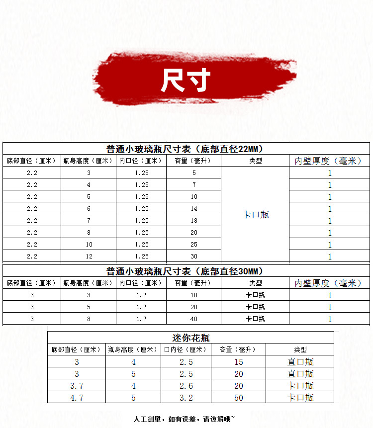 多肉绿植迷你小花瓶(多种尺寸可选)