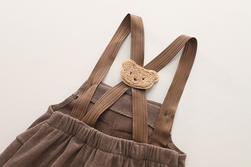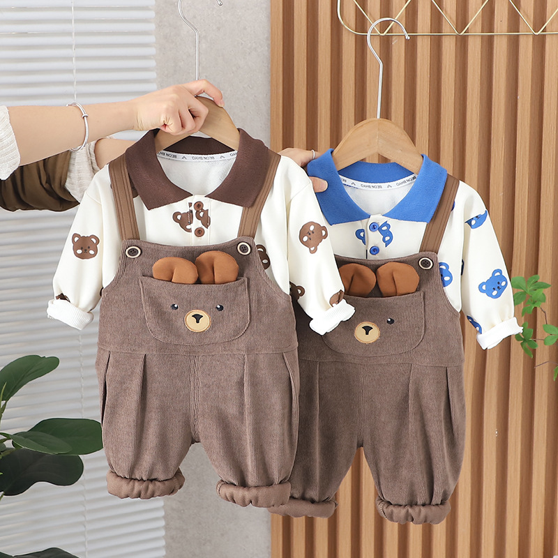 소년의 서양식 인쇄 된 곰 서스펜더 바지 세트 봄과 가을 새로운 아기 귀여운 투피스 세트 아기 의류 패션스토어 가기