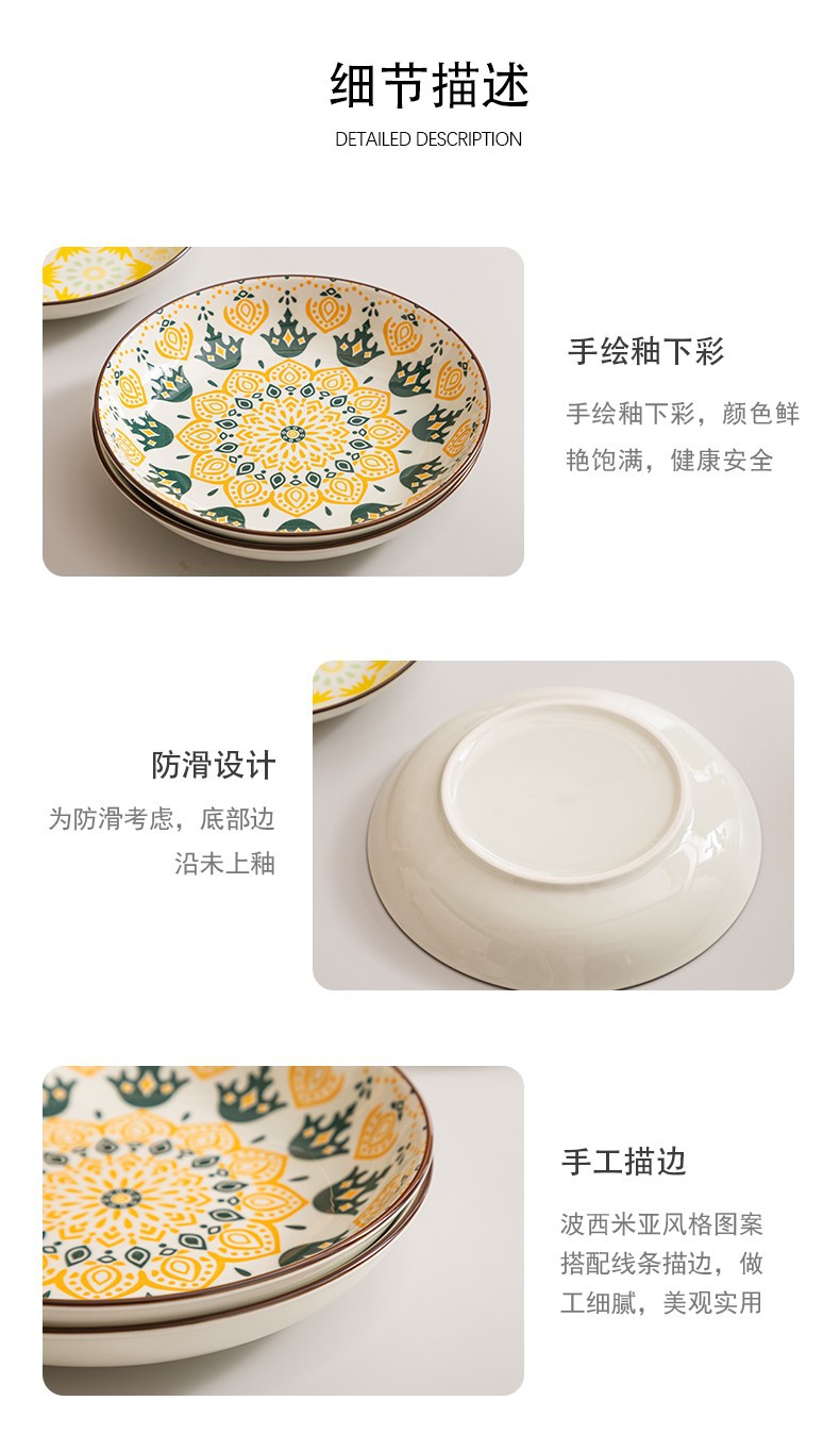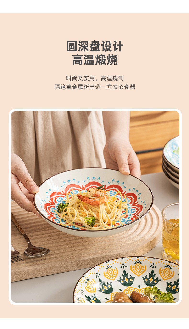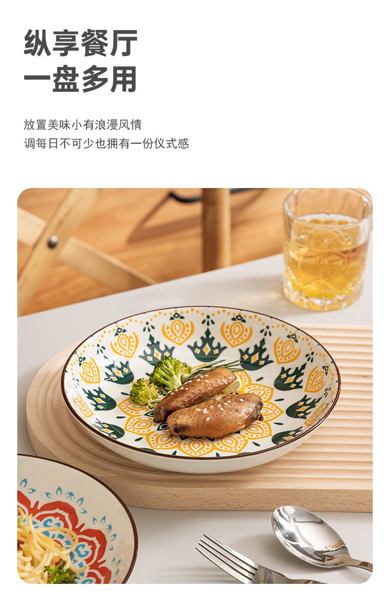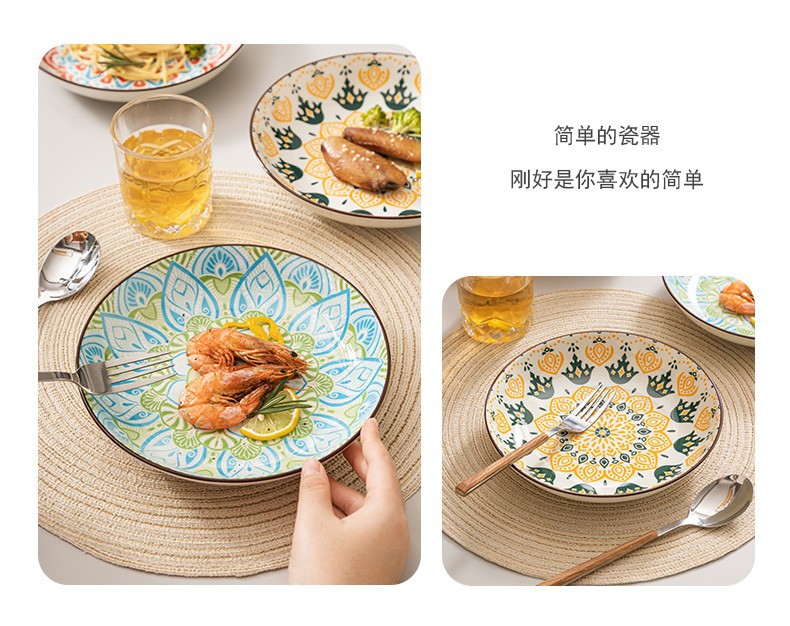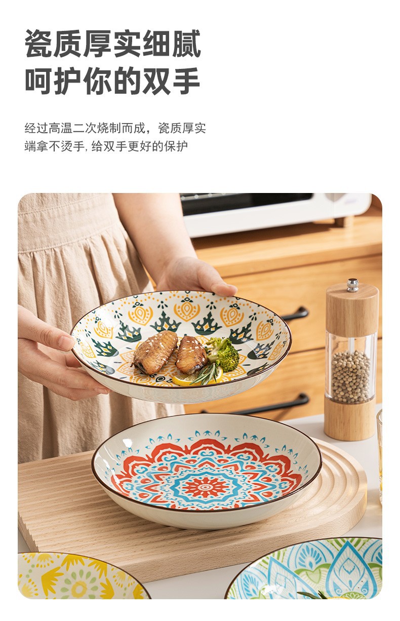 보헤미안 세라믹 깊은 수프 접시 평평한 접시 원형 접시 절임 접시 일본식 접시 수프 접시 유약 밑 색상 기계 인쇄스토어 가기