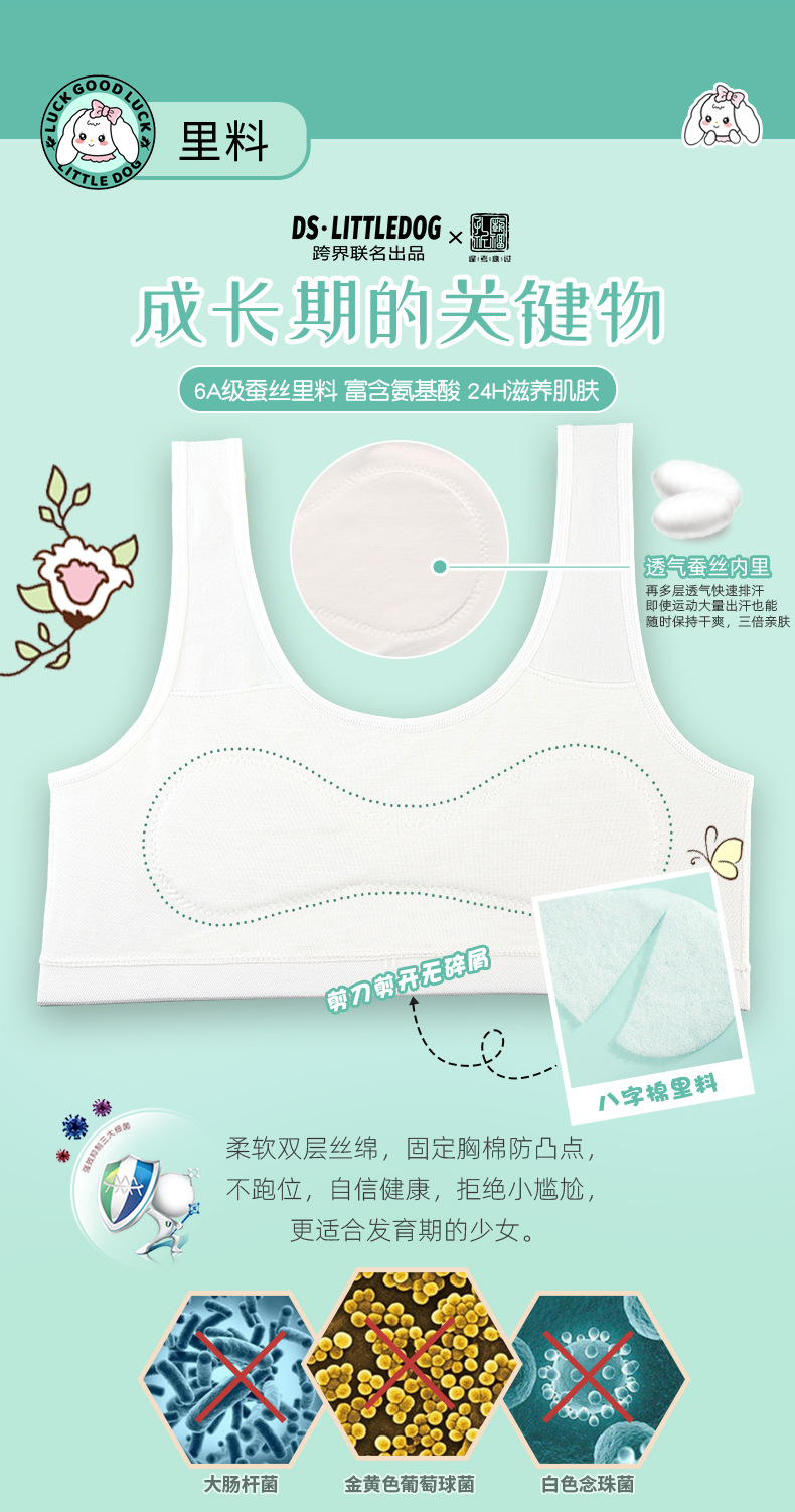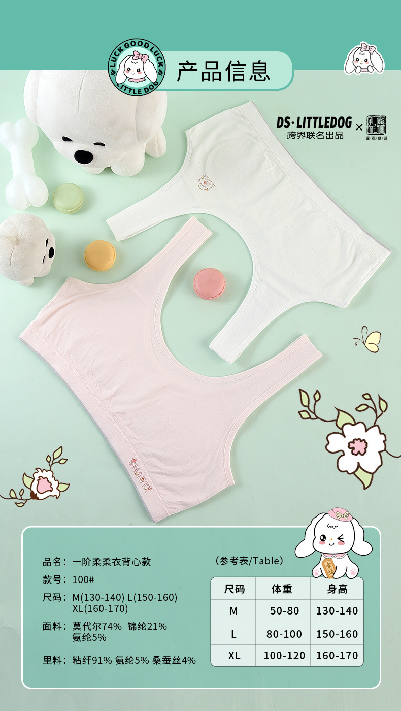 1 단계 개발 기간 학생 소녀 조끼 원활한 통기성 안티 범프 성장 기간 실크 큰 딸 어린이 속옷스토어 가기
