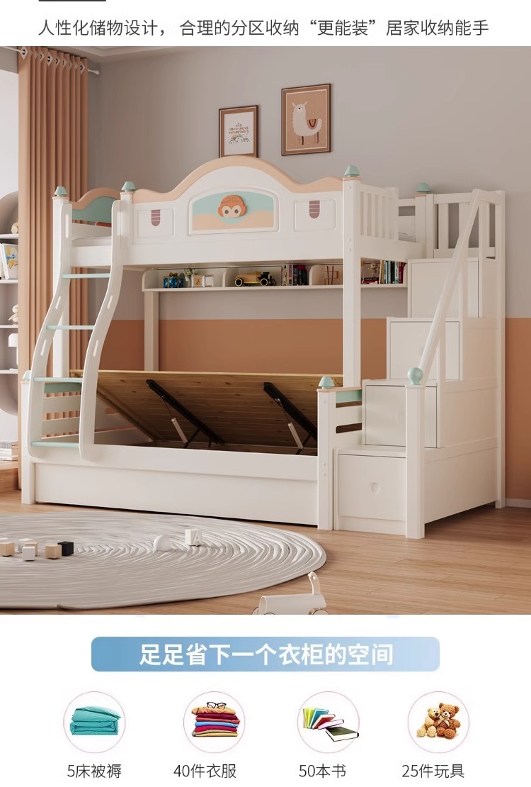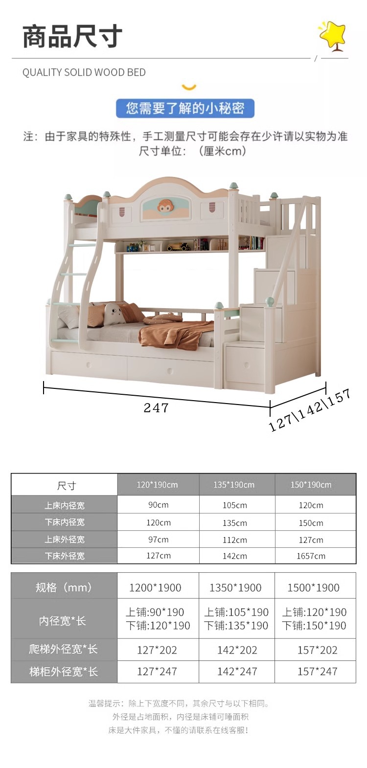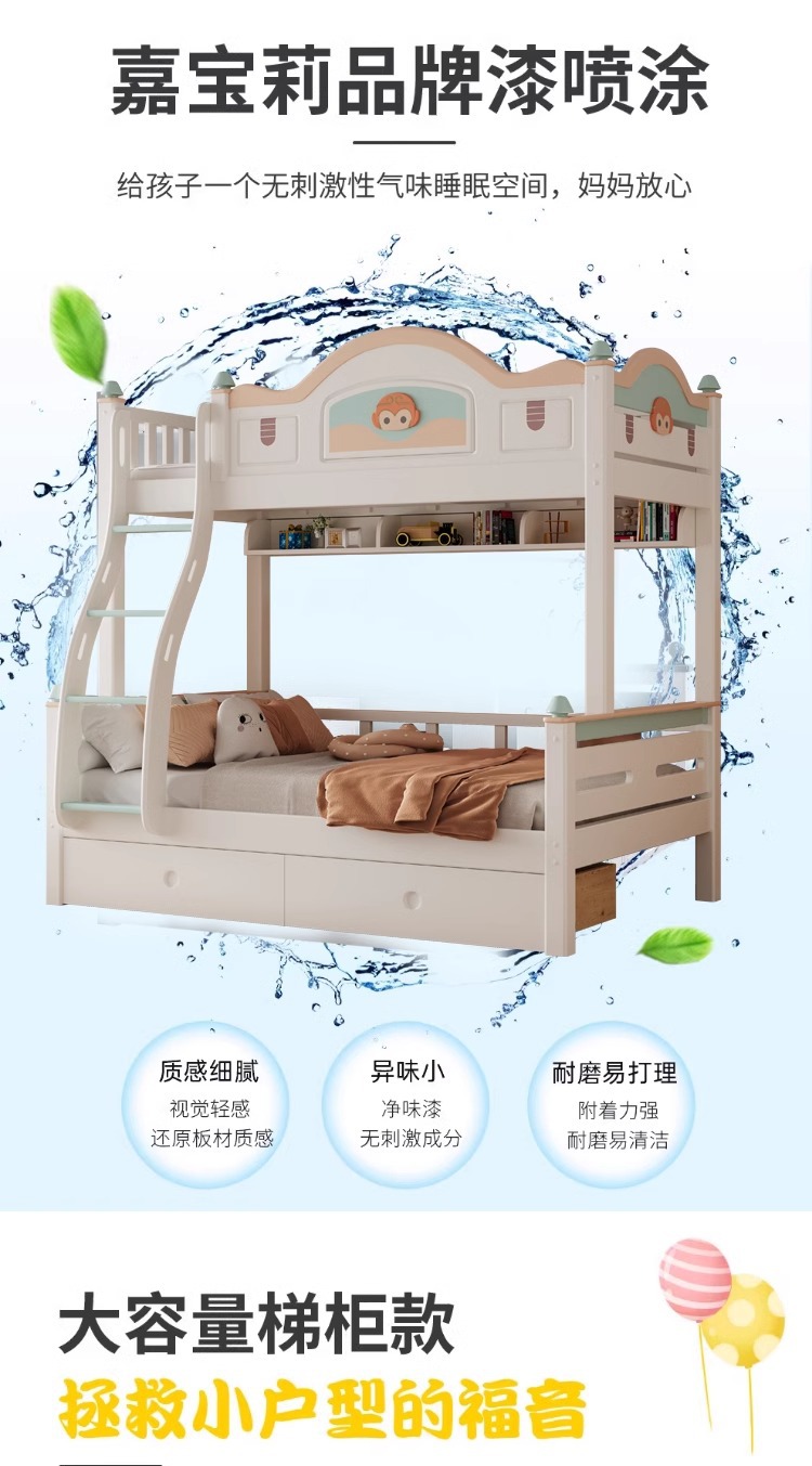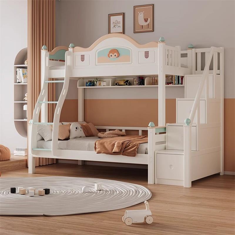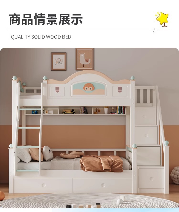 모든 단단한 나무 작은 아파트 침대 더블 레이어 어린이 침대 홈 침실 높은 낮은 침대 귀여운 만화 사다리 후크 업 침대
