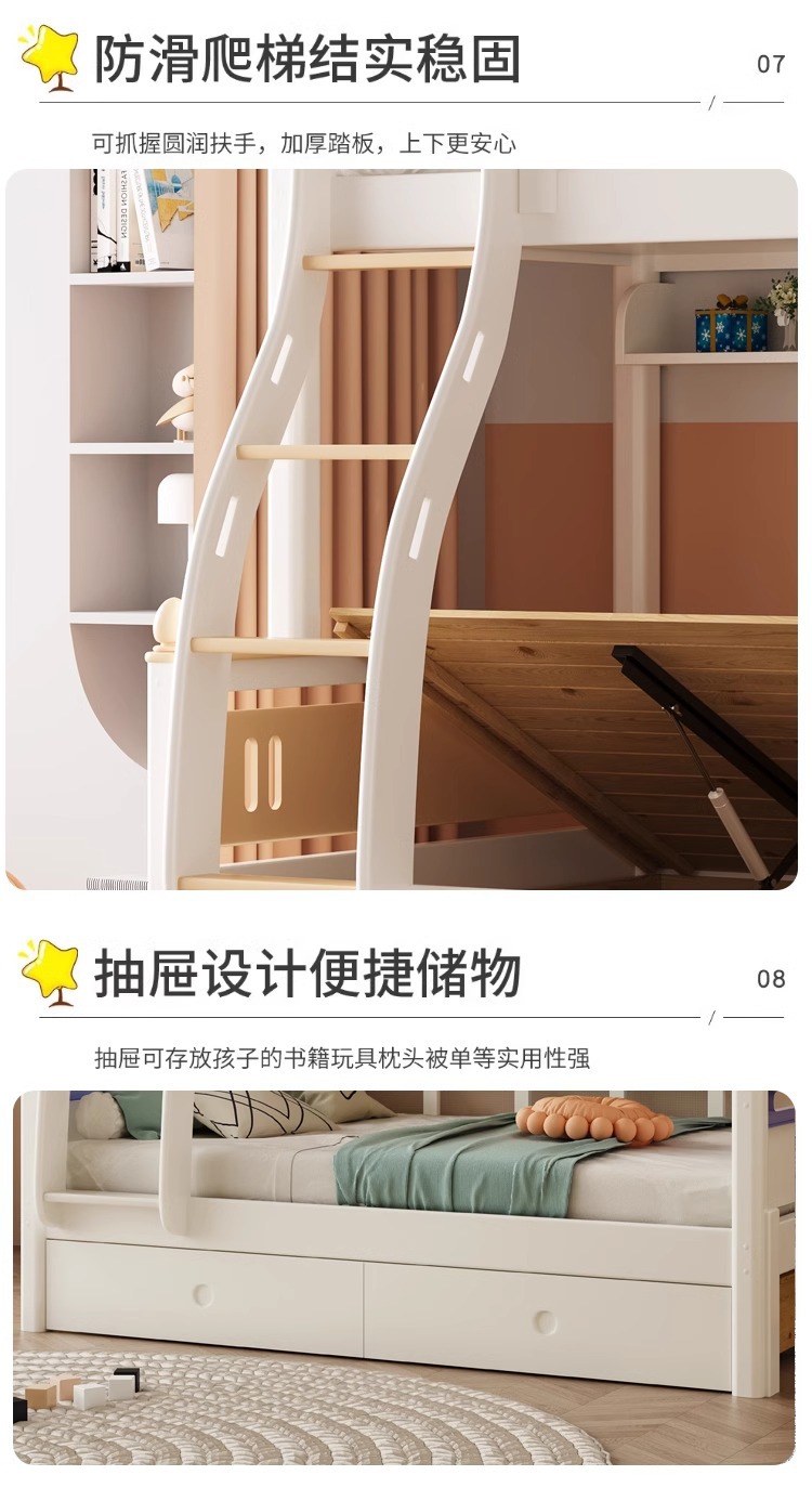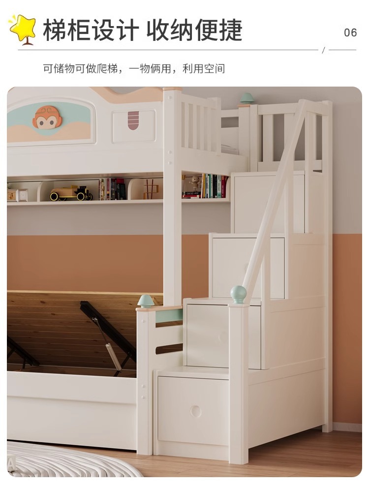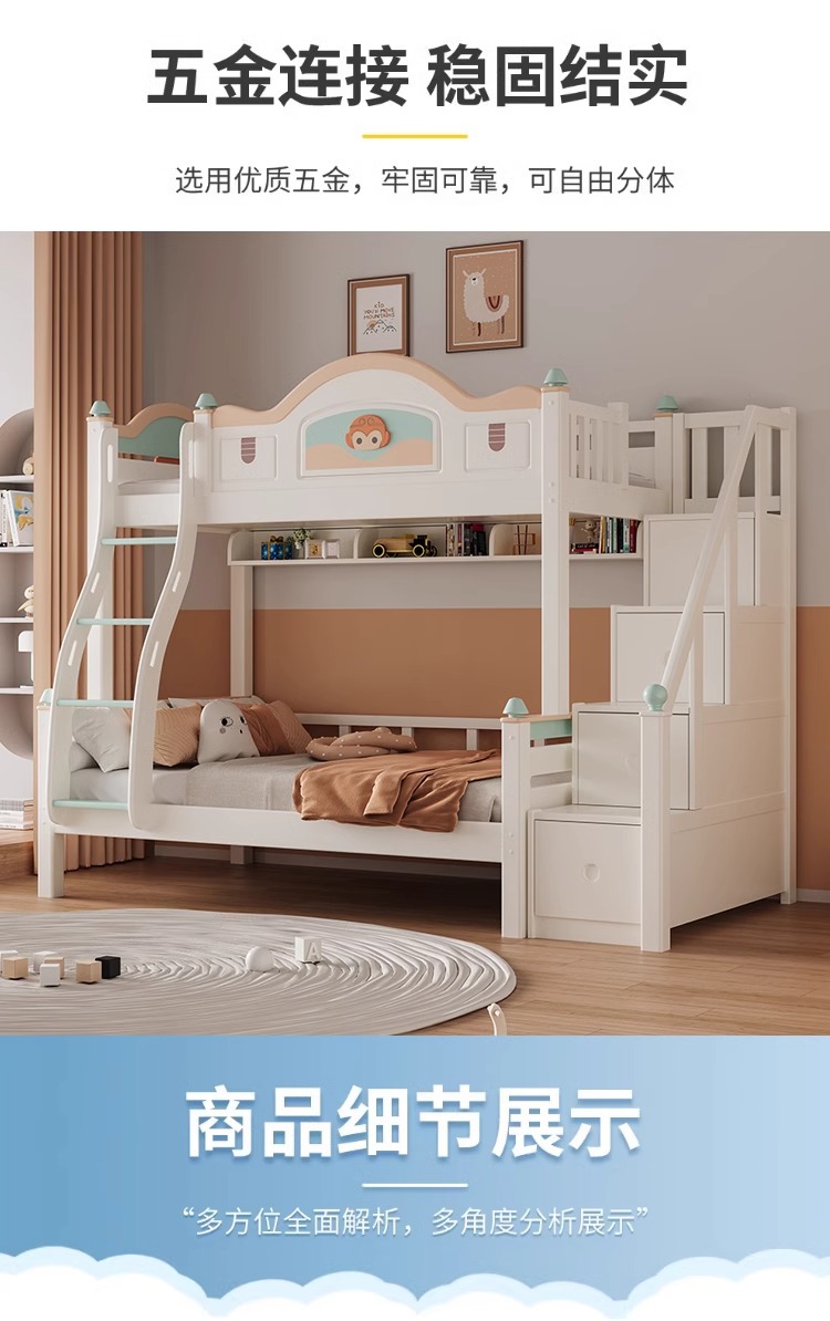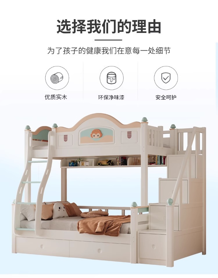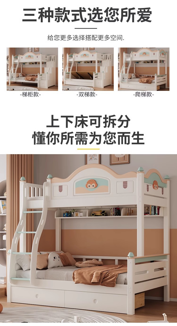 모든 단단한 나무 작은 아파트 침대 더블 레이어 어린이 침대 홈 침실 높은 낮은 침대 귀여운 만화 사다리 후크 업 침대