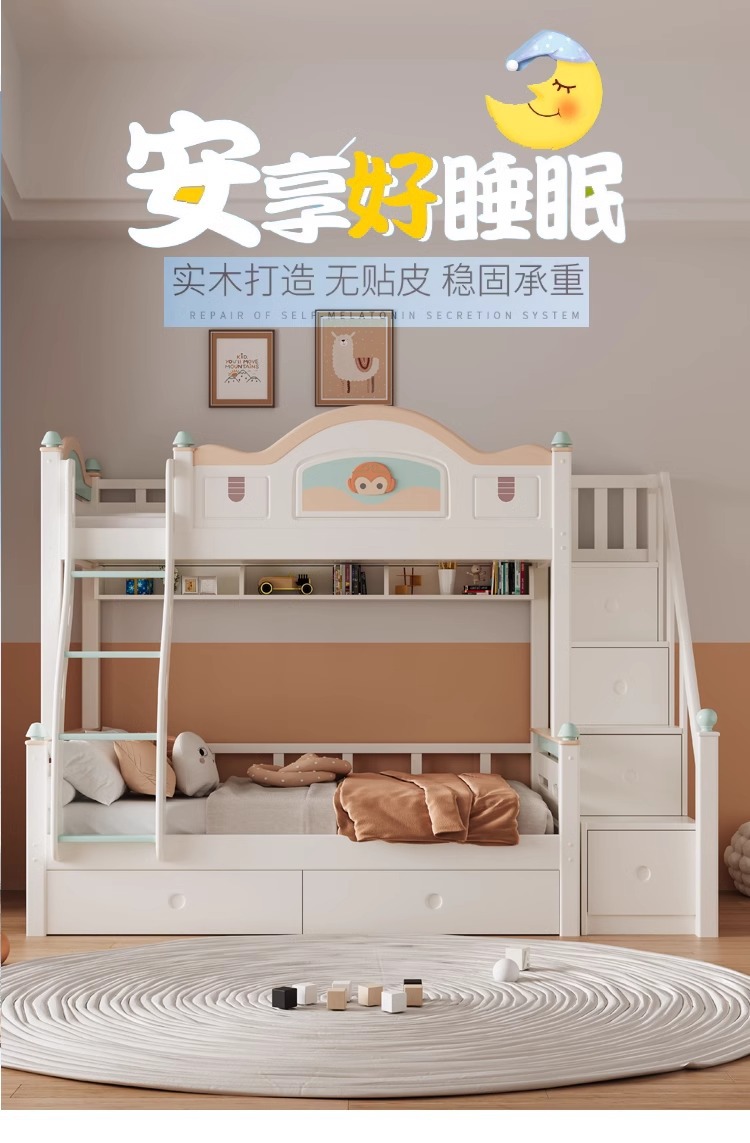 모든 단단한 나무 작은 아파트 침대 더블 레이어 어린이 침대 홈 침실 높은 낮은 침대 귀여운 만화 사다리 후크 업 침대스토어 가기