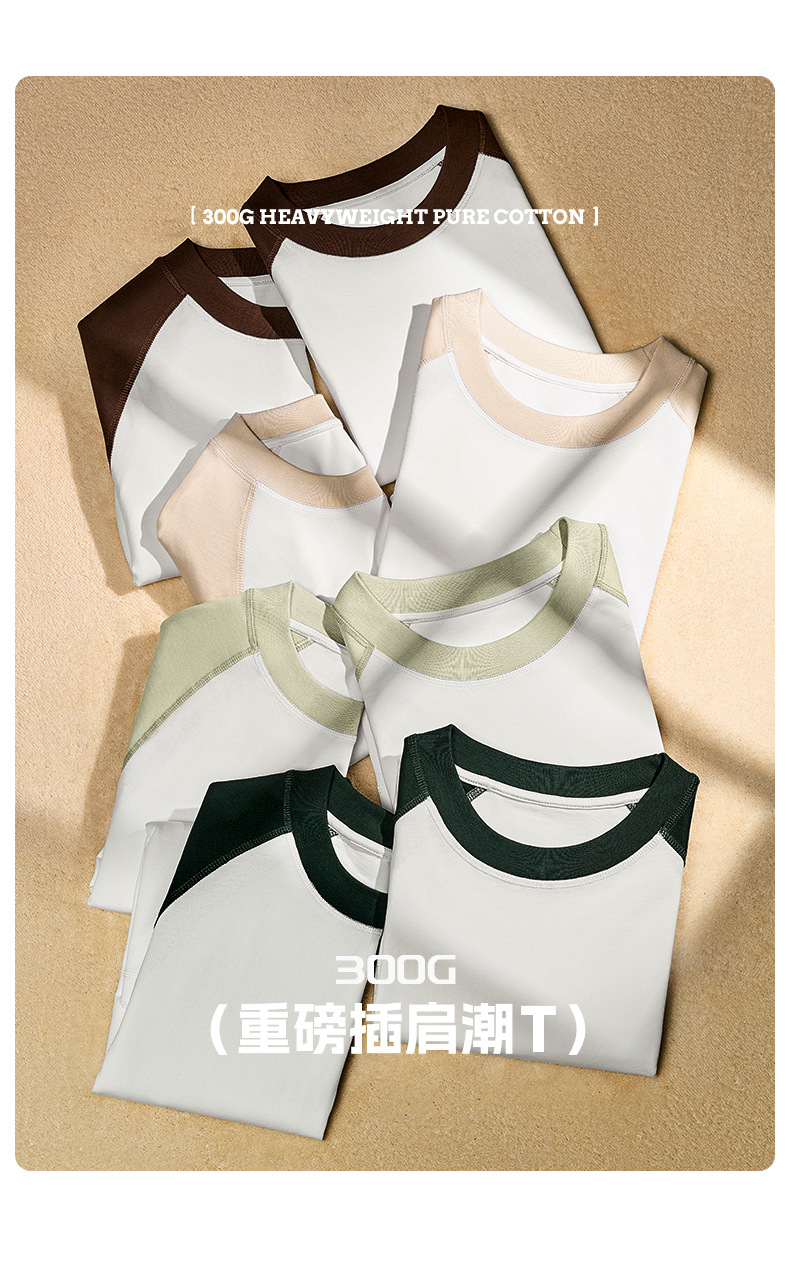 헤비 코튼 300g 라글란 소매 티셔츠 일본식 청소년 대비 라운드 넥 재킷 느슨한 캐주얼 짧은 소매 남성 여름