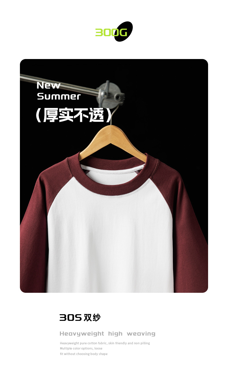 헤비 코튼 300g 라글란 소매 티셔츠 일본식 청소년 대비 라운드 넥 재킷 느슨한 캐주얼 짧은 소매 남성 여름스토어 가기