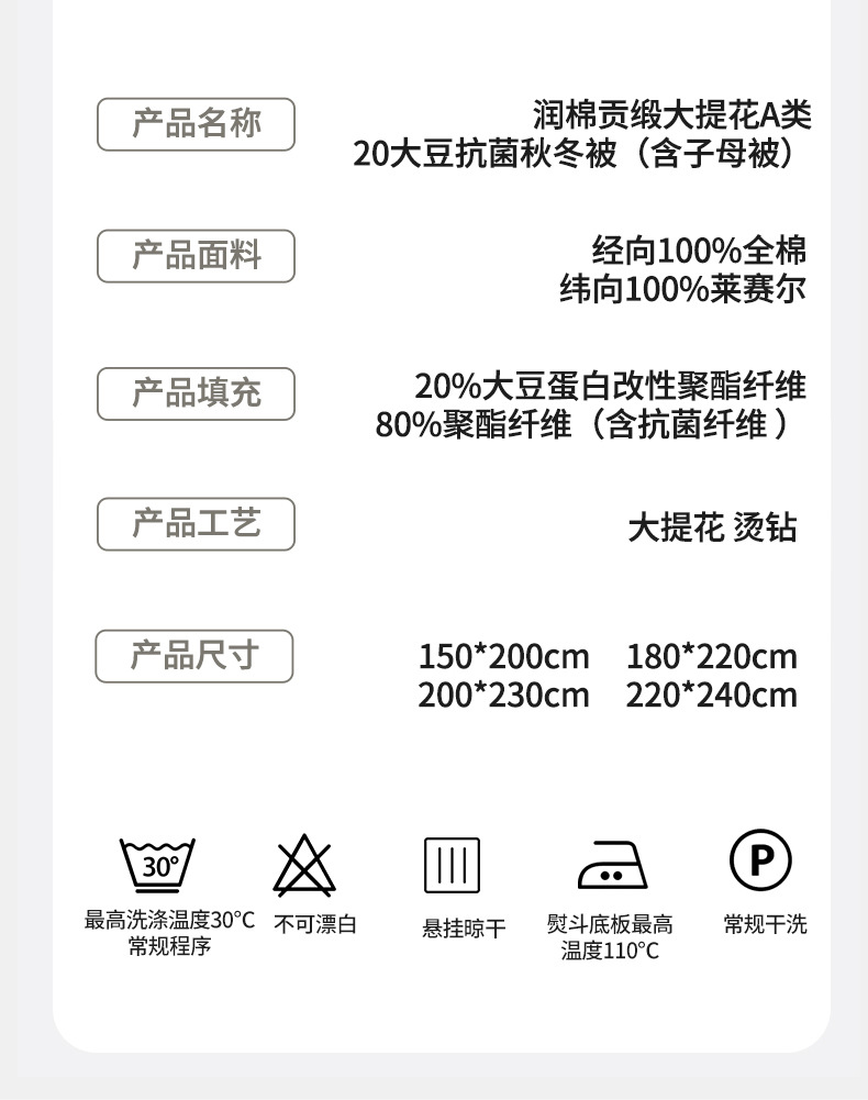 Runmian 공물 새틴 자카드 클래스 A 20 콩 항균 가을과 겨울 이불 150 x200cm4.5 진 수직 흰색