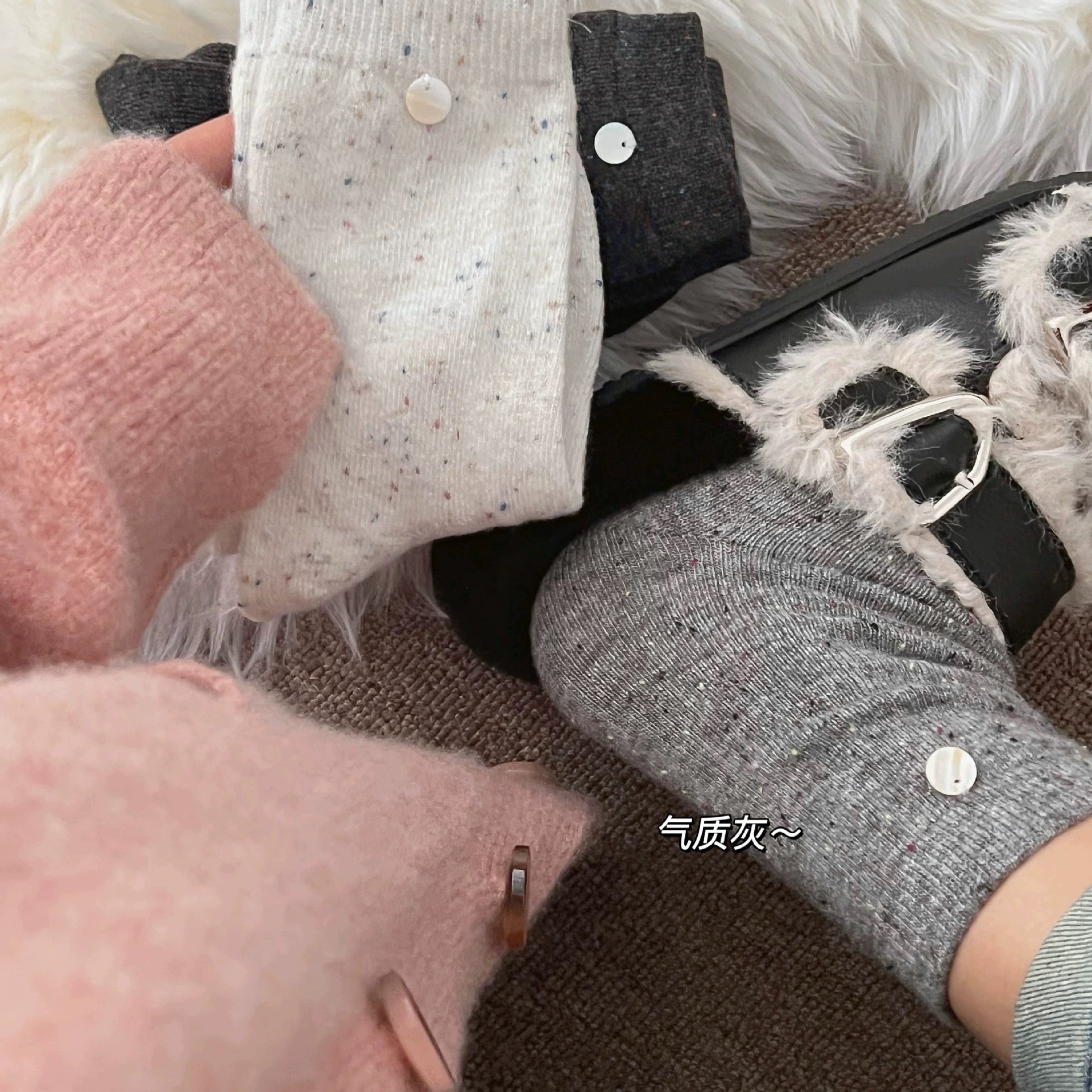 여성 한국식, 화려한 면모 양말 가을과 겨울 복고풍 두꺼운 버튼 쉘 중간 종아리 더미 양말