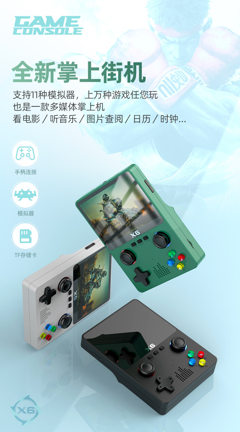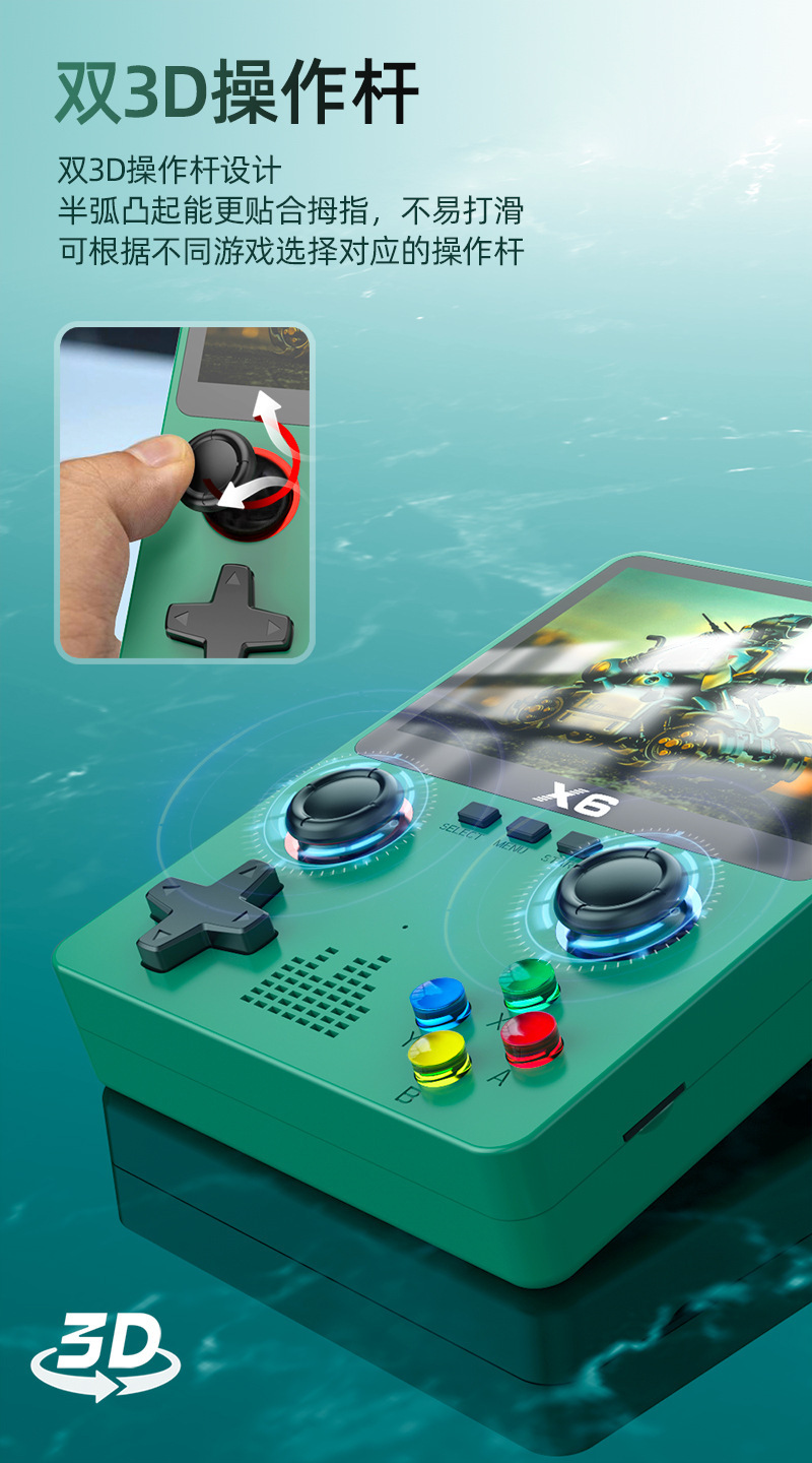 X6 휴대용 게임기 3D 더블 로커 아케이드 3.5 HD 대형 스크린 레트로 향수 핸드 헬드 기계스토어 가기