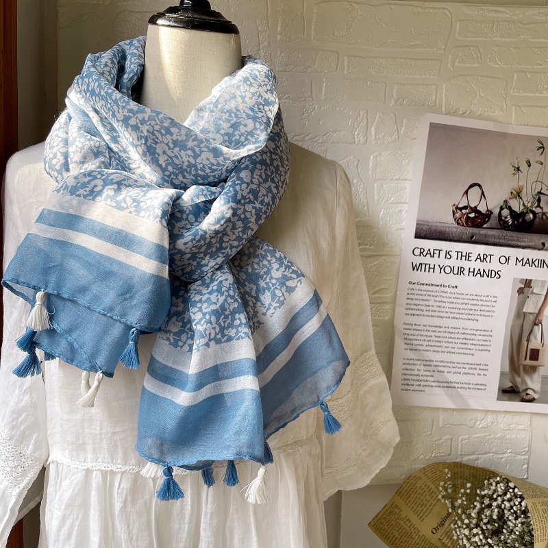 민족 스타일면 및 린넨 프린트 교수형 스카프 여성의 신선한 이른 봄 여행 사진 오목한 모양 장식 목도리 스카프스토어 가기