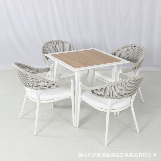 야외 테이블과 의자, 정원용 심플한 식탁 의자 5종 세트, 야외 정원용 레저용 로프 엮은 테이블과 의자