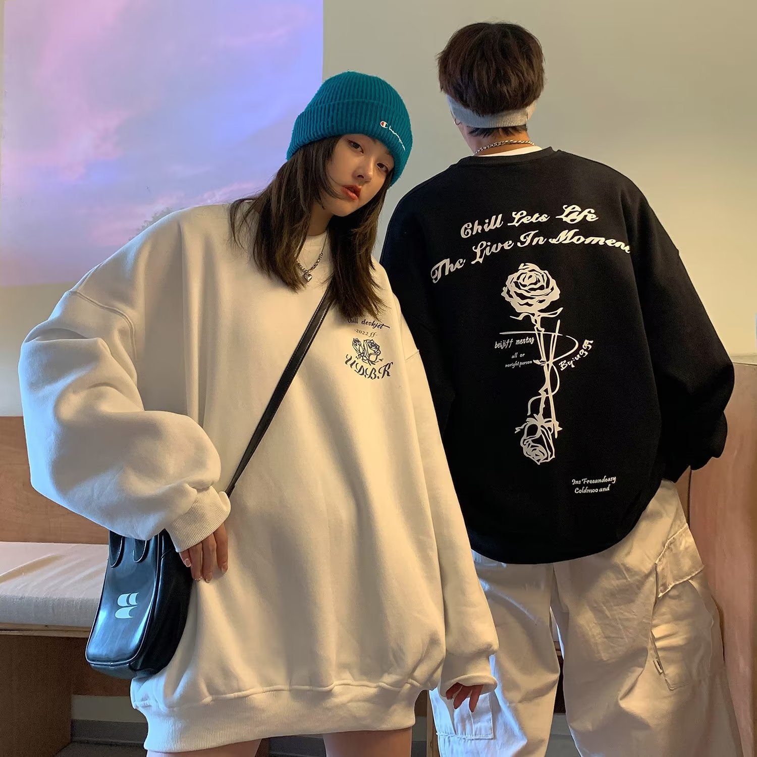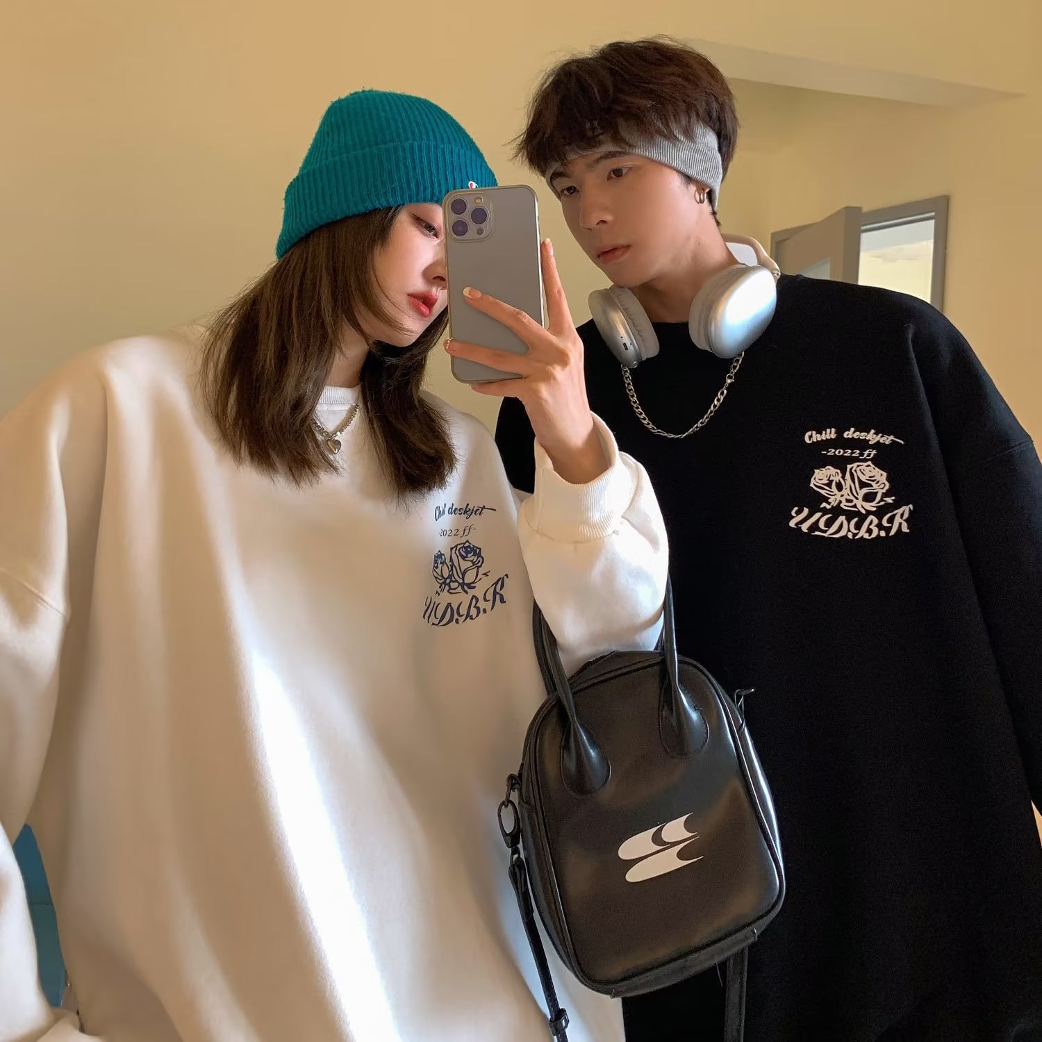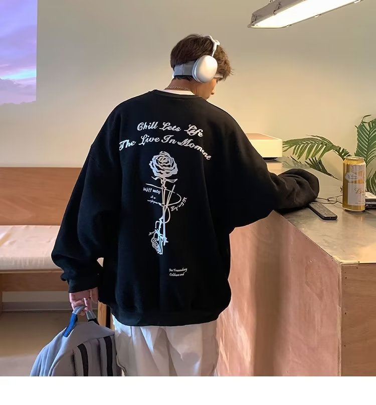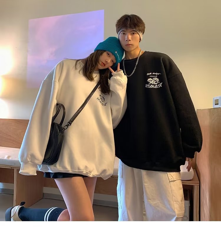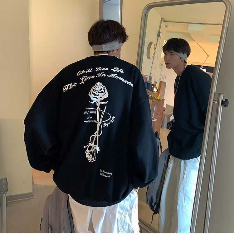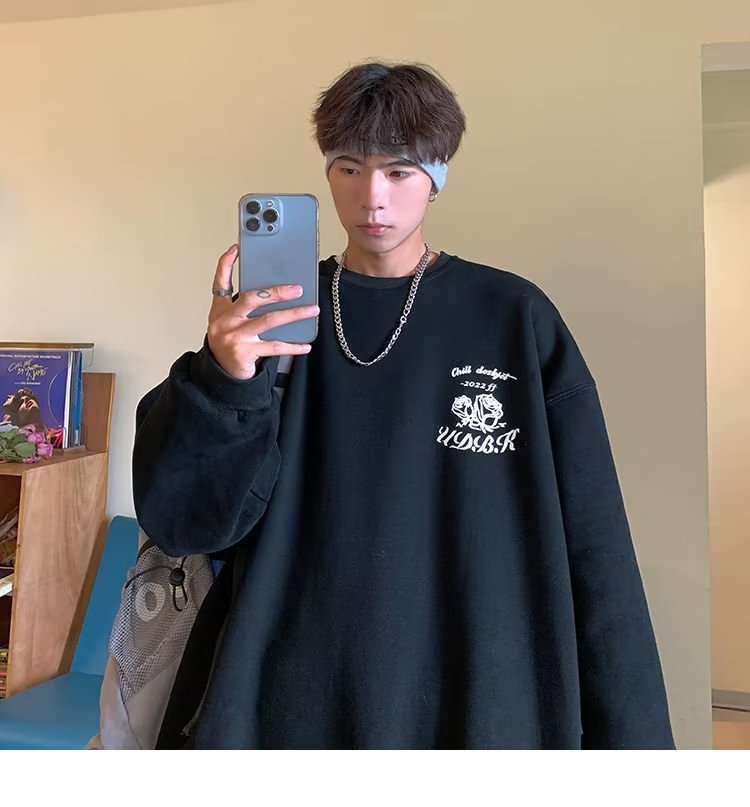 기모 가을과 겨울 스웨트 남성용 트렌디 브랜드 헤비 블랙 두꺼운 크루 넥 2024 뉴 후드 롱 슬리브 탑스토어 가기