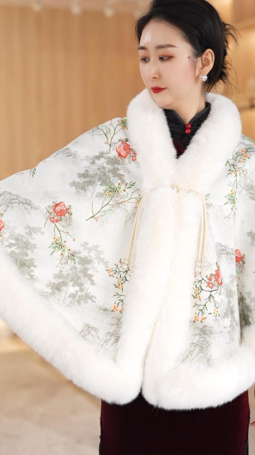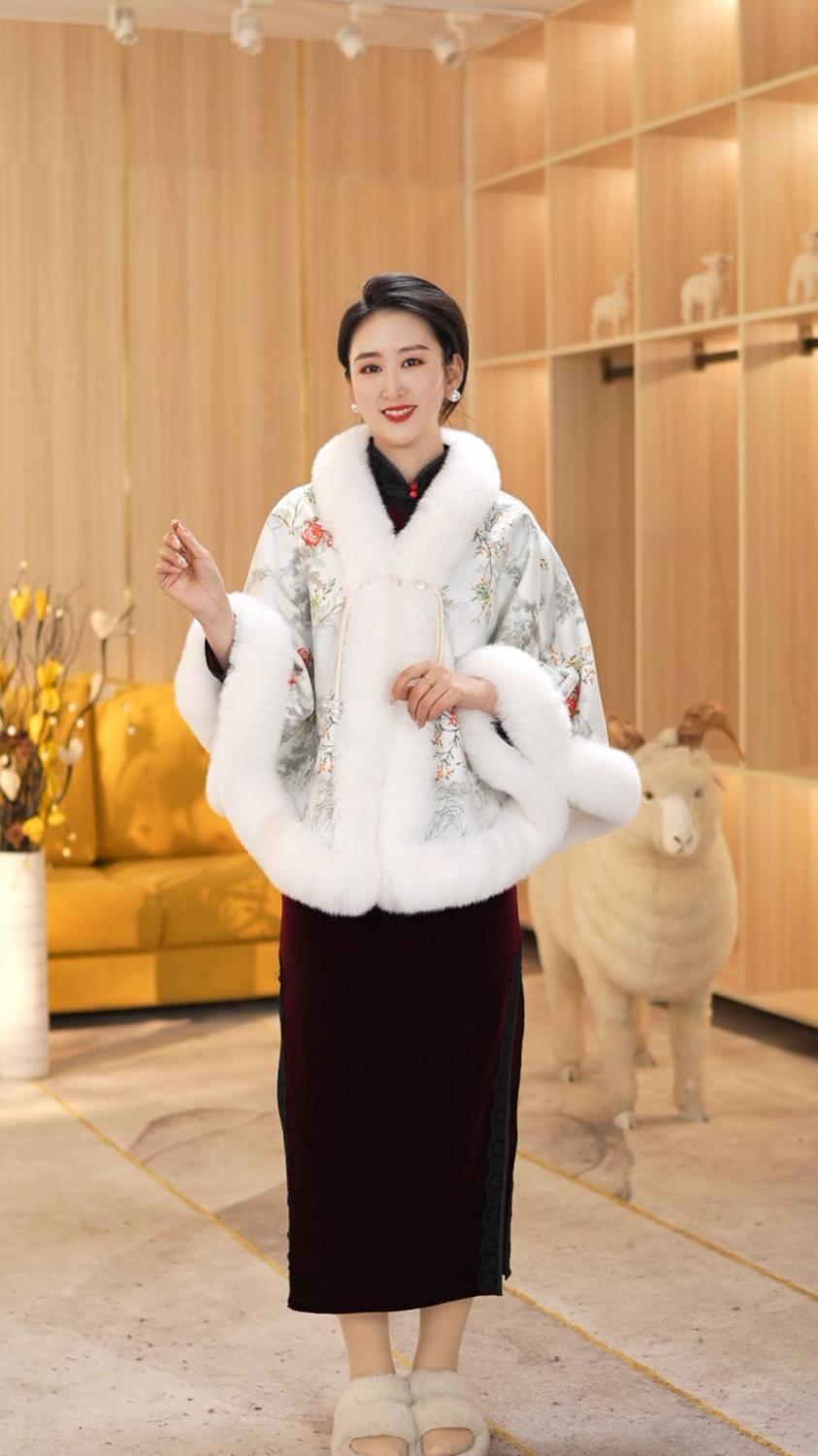 Miss He da 중국 스타일 모피 칼라 대형 목도리 우아한 기질 여성의 인기 온라인 붉은 바다 스타일 여성의 올 매치 가을과 겨울스토어 가기