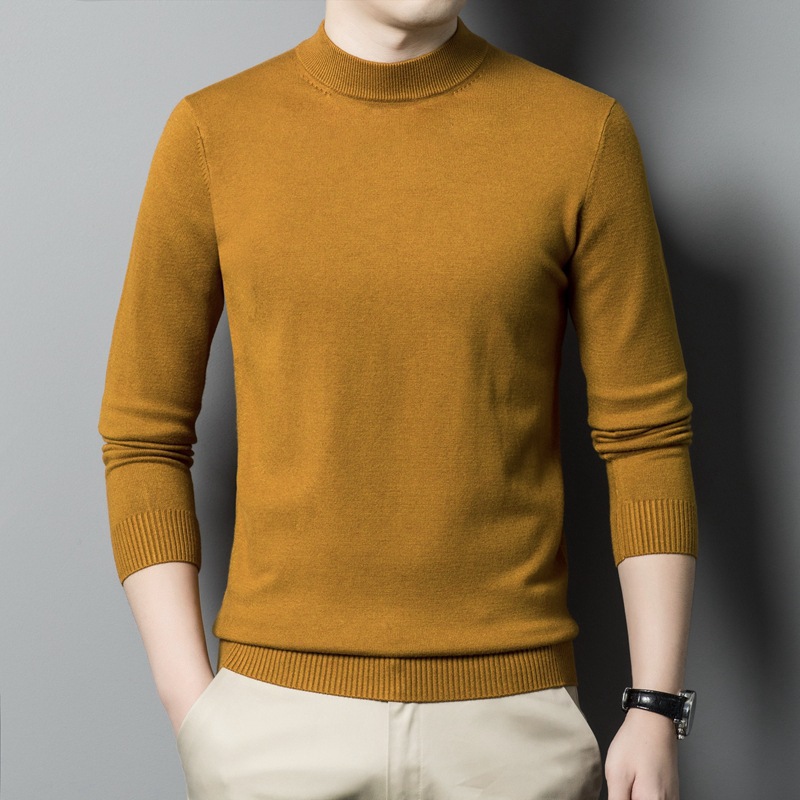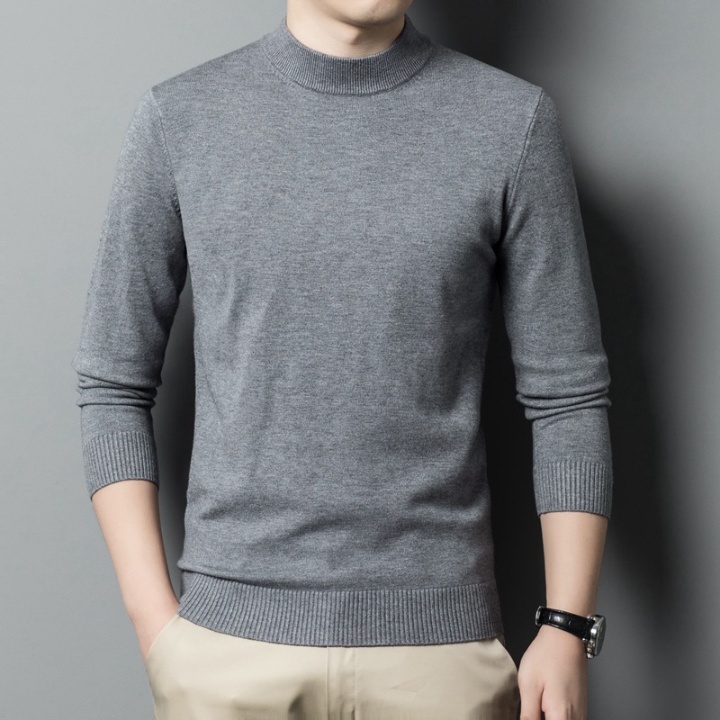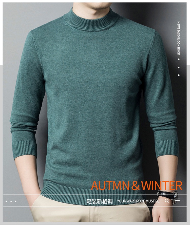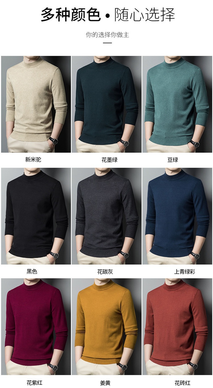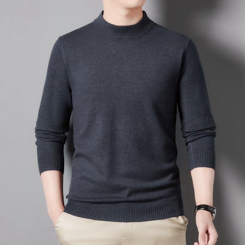 스웨터 남성 니트 상인 남성 가을과 겨울 새로운 중년 반 터틀넥 단색 바닥 셔츠 남성 의류스토어 가기