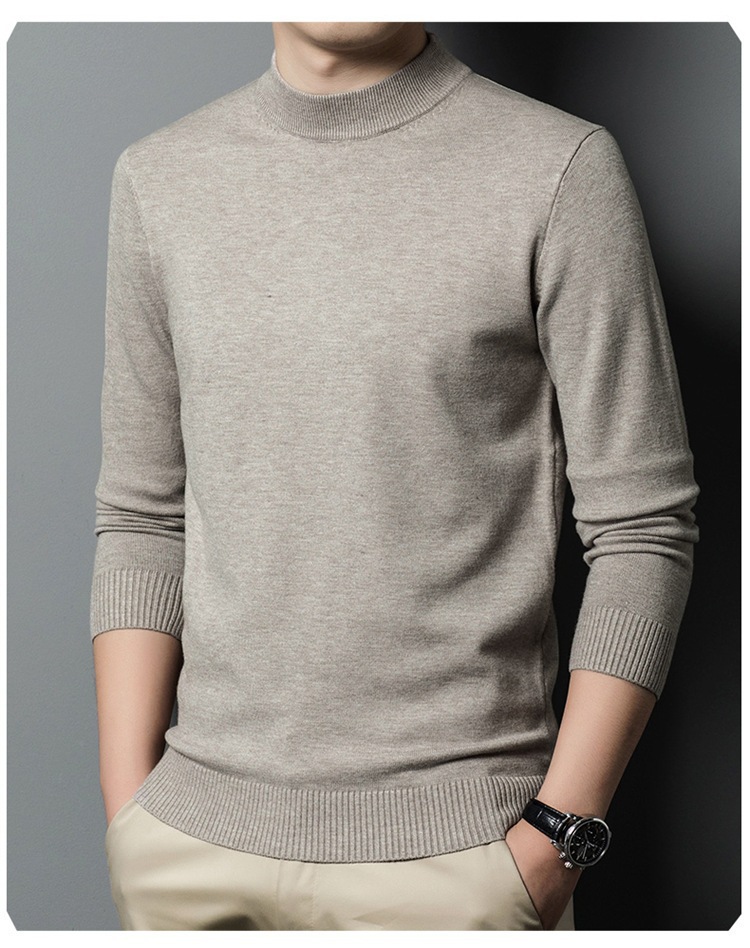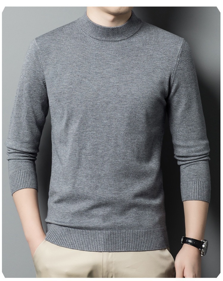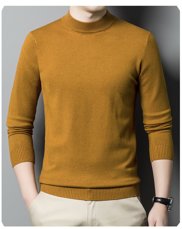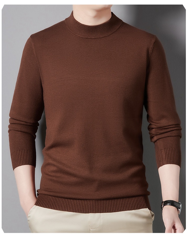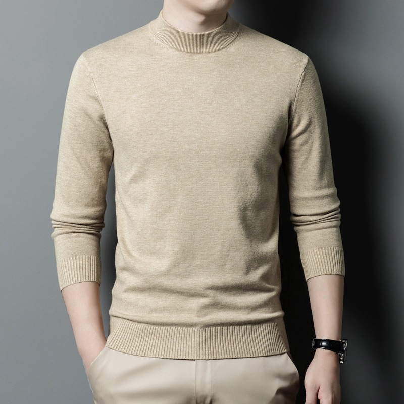 스웨터 남성 니트 상인 남성 가을과 겨울 새로운 중년 반 터틀넥 단색 바닥 셔츠 남성 의류스토어 가기