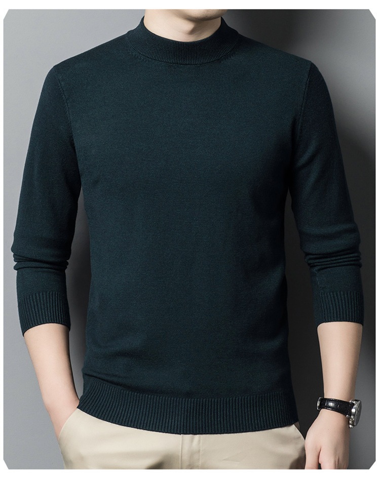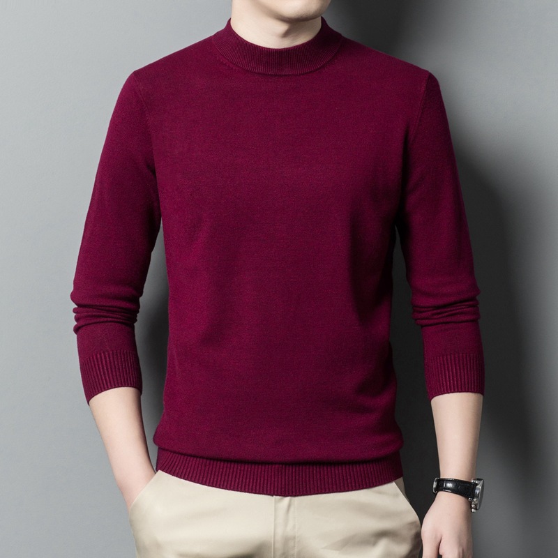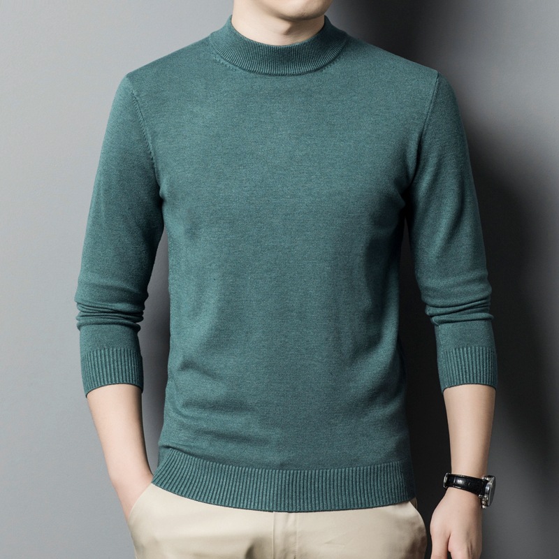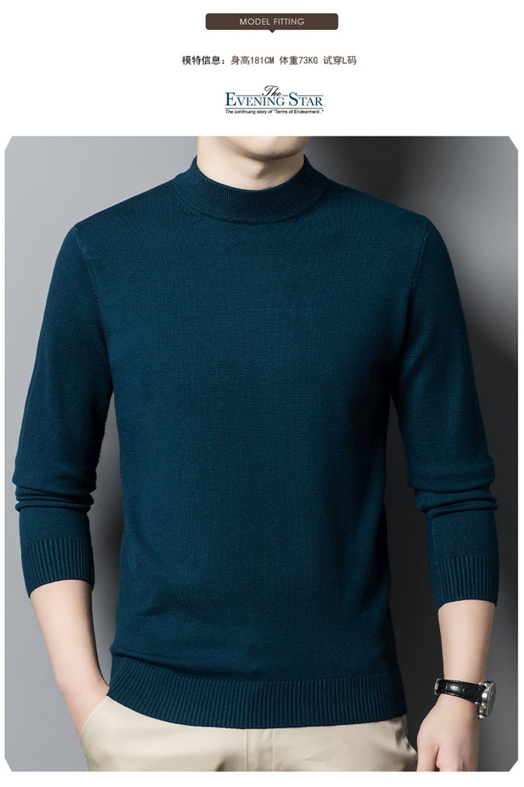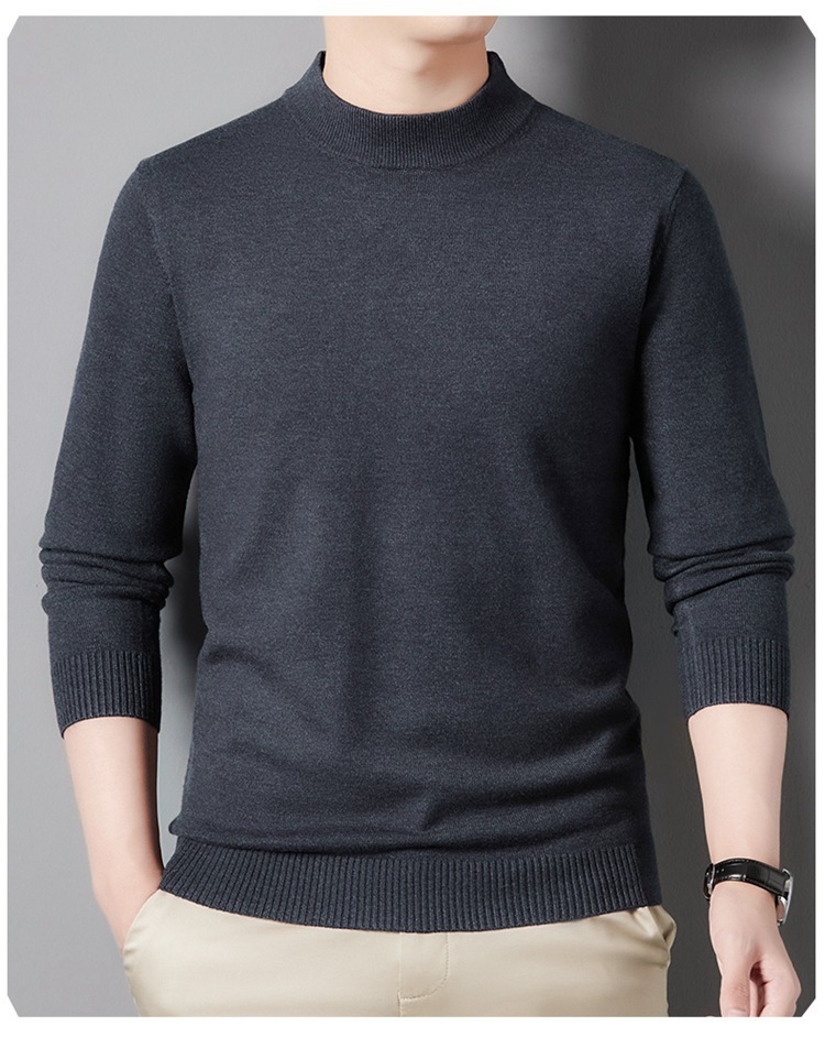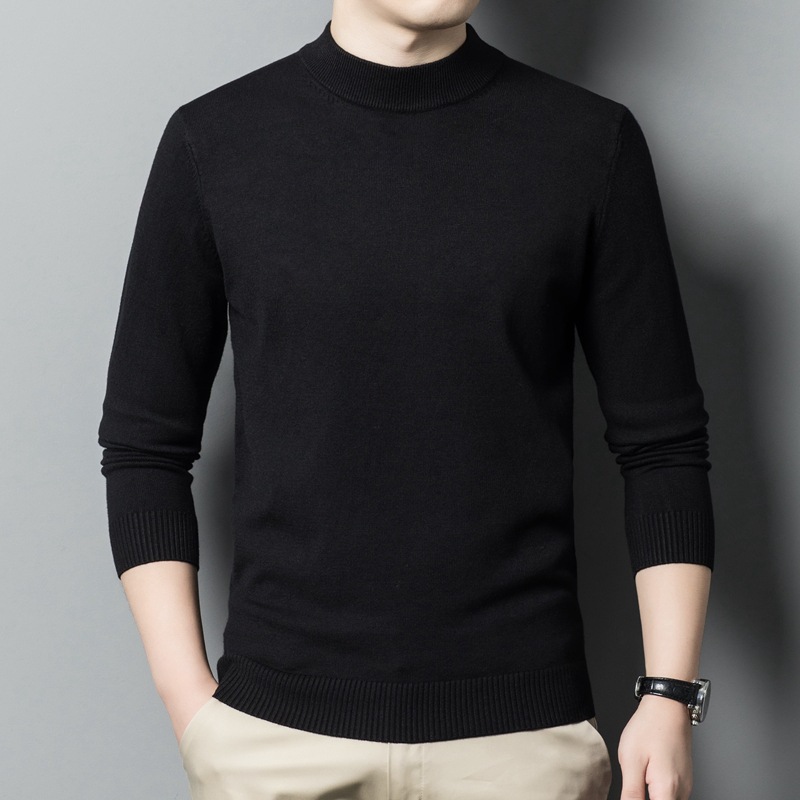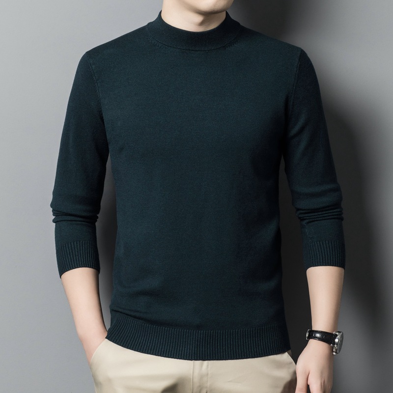 스웨터 남성 니트 상인 남성 가을과 겨울 새로운 중년 반 터틀넥 단색 바닥 셔츠 남성 의류