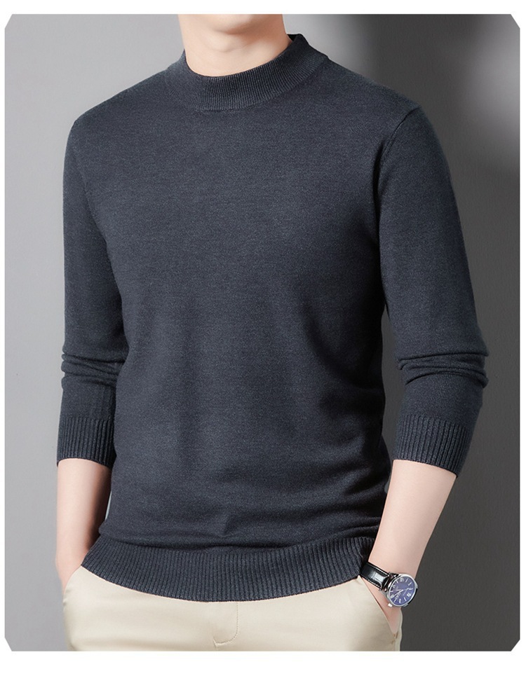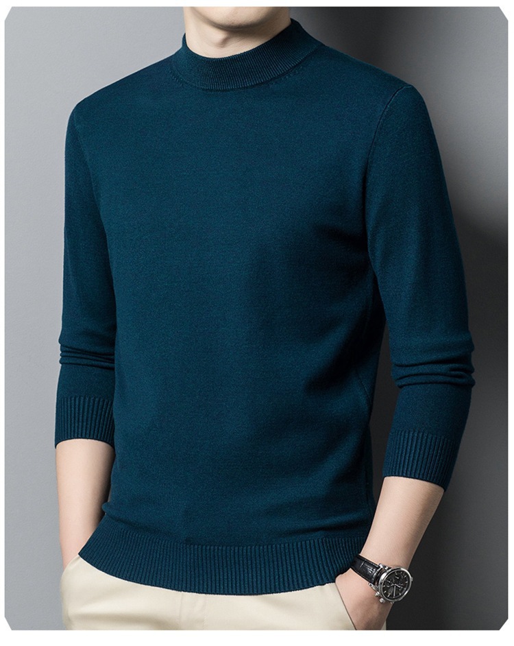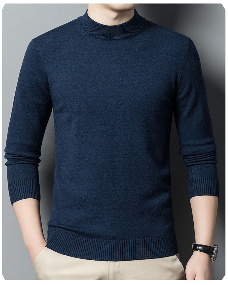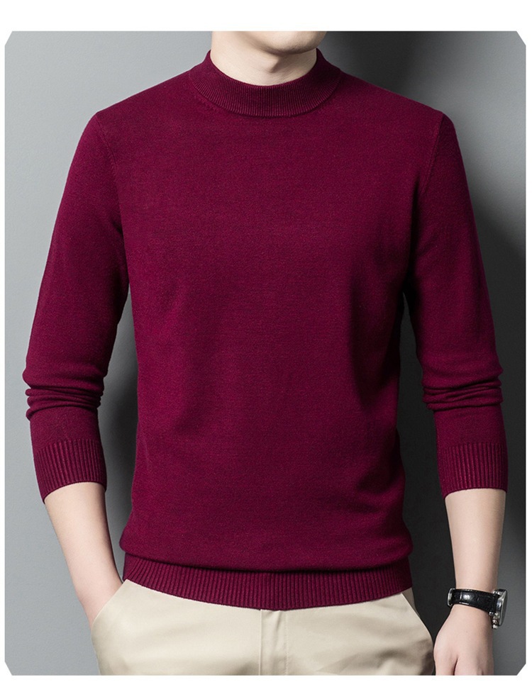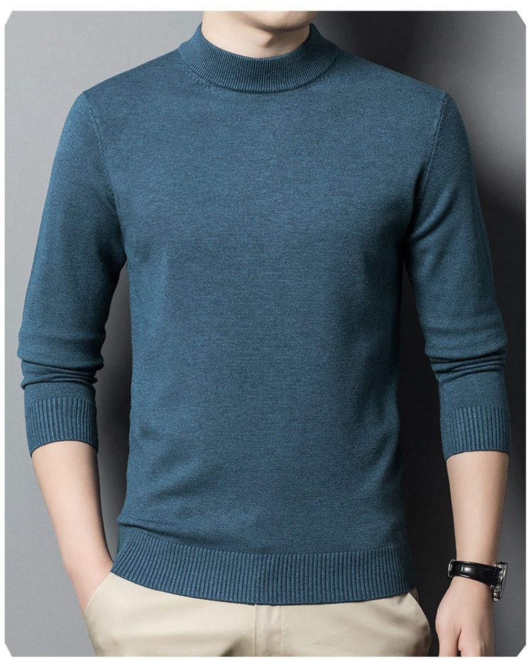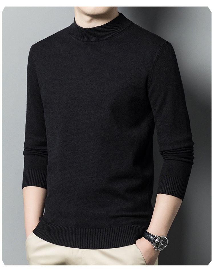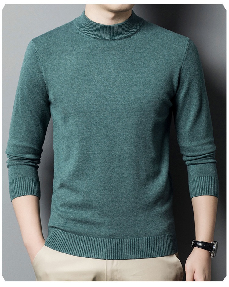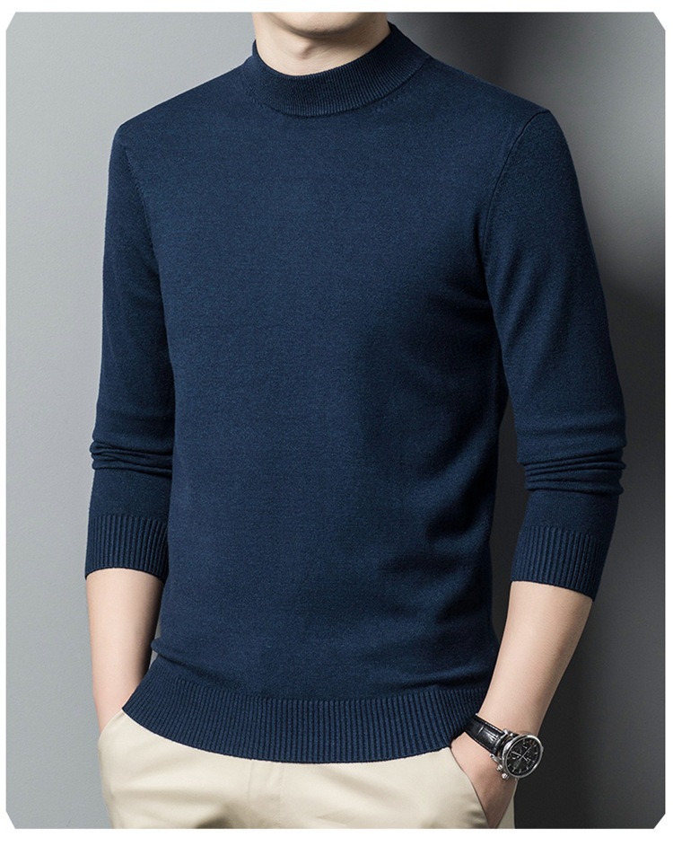 스웨터 남성 니트 상인 남성 가을과 겨울 새로운 중년 반 터틀넥 단색 바닥 셔츠 남성 의류