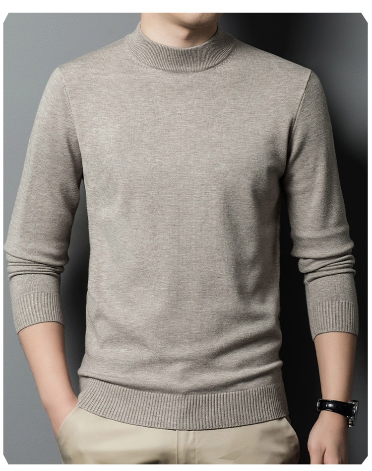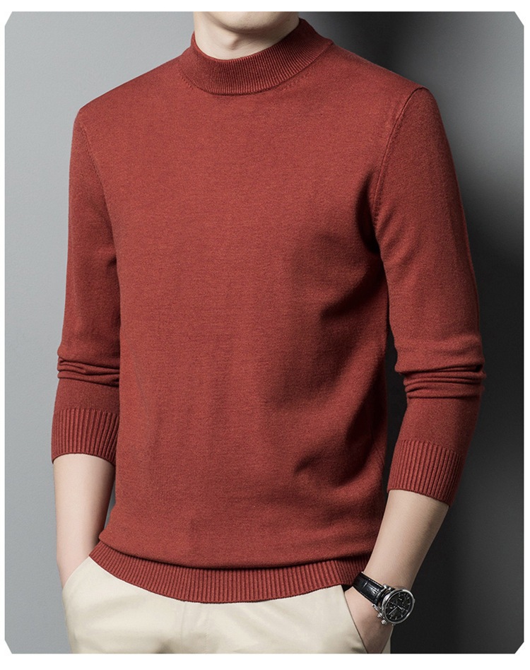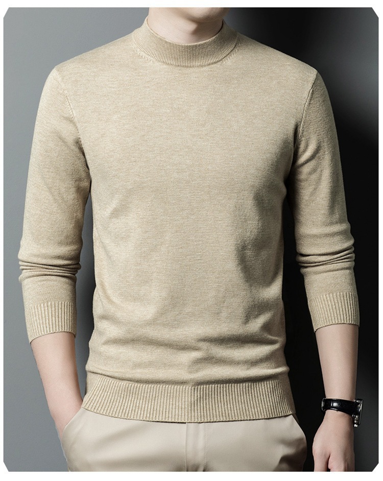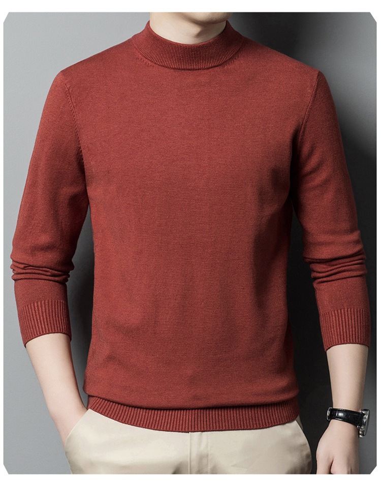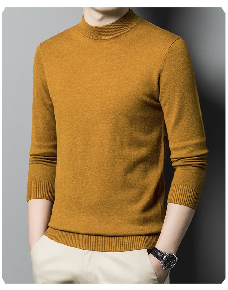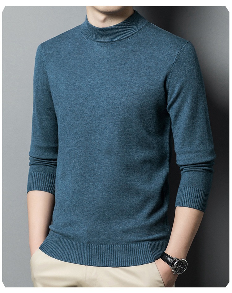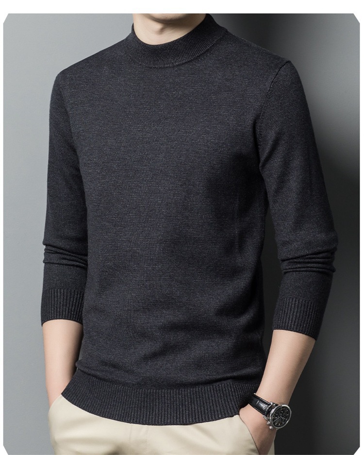 스웨터 남성 니트 상인 남성 가을과 겨울 새로운 중년 반 터틀넥 단색 바닥 셔츠 남성 의류