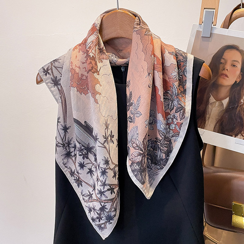 봄과 여름 새로운 스타일의 정글 우아한 작은 사각형 스카프 간단한 패션 실크 스카프 숄 다양한 전문 작은 스카프 리본스토어 가기
