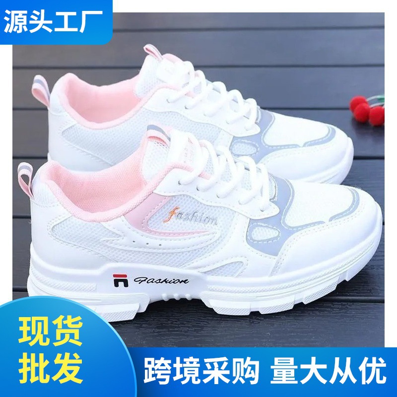 2025夏季新款系带休闲运动鞋透气网面小白鞋软底百搭跑步鞋学生鞋